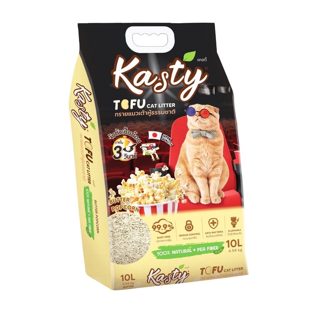 Kasty แคสตี้ ทรายแมวเต้าหู้ ธรรมชาติ 10ลิตร ไร้ฝุ่น ดับกลิ่นดี จับตัวเร็ว ทิ้งชักโครกได้