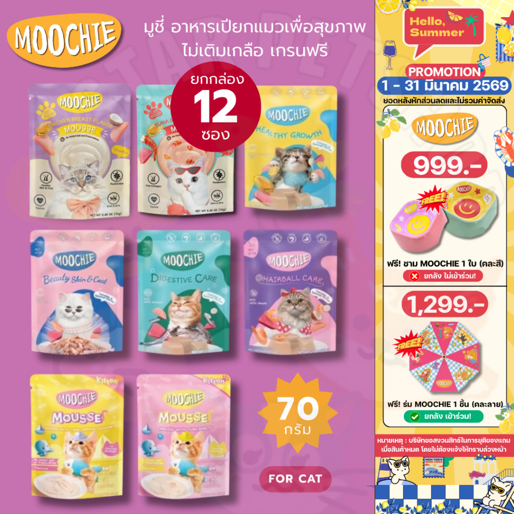 Moochie มูชี่ อาหารเปียกแมวเพื่อสุขภาพ ไม่เติมเกลือ เกรนฟรี ขนาด70g*12ซอง