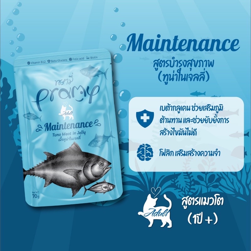 Pramy พรามี่ *ขายดีสุดๆ* อาหารเปียกแมว ไม่เค็ม บำรุงสุขภาพ ทุกช่วงวัย ขนาด 70g*12ซอง
