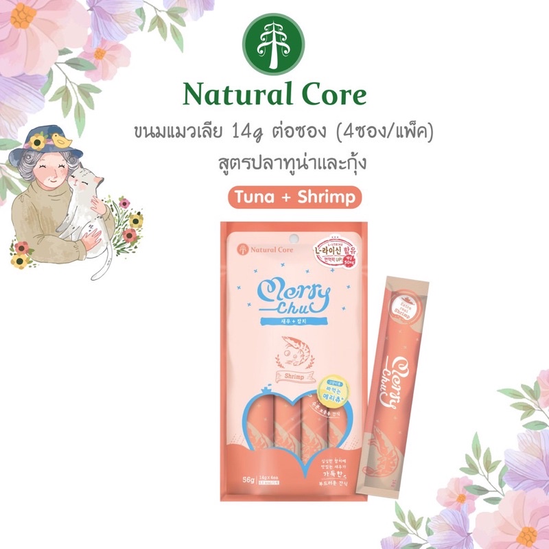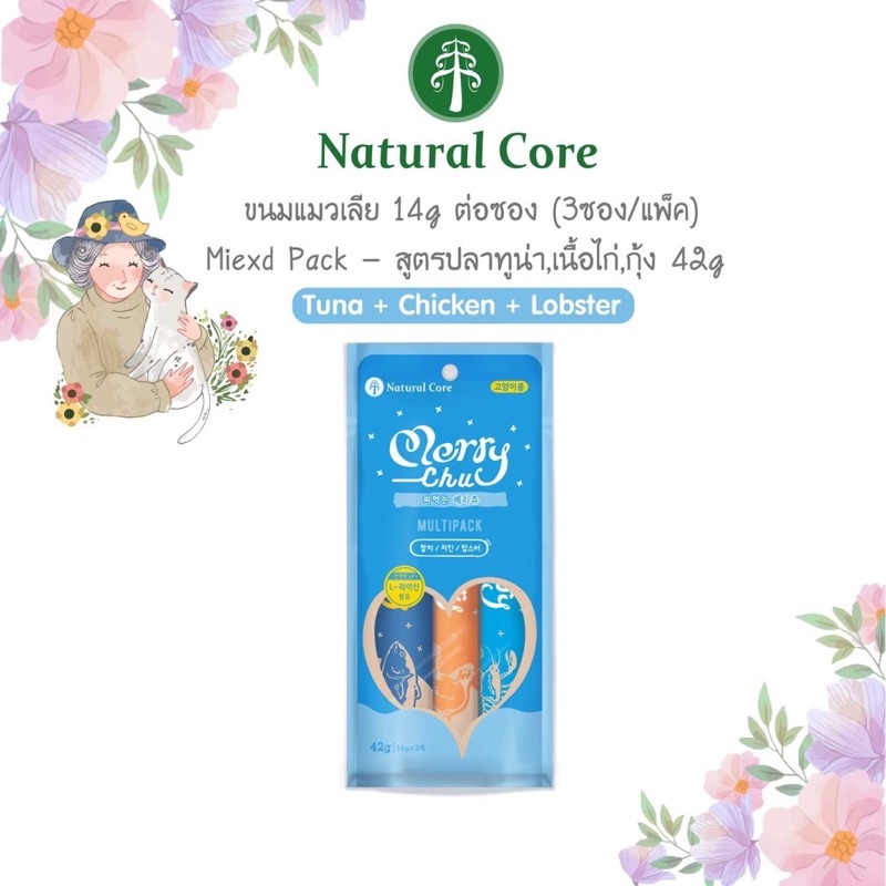 🔥Natural Core Merry Chu ขนมเเมวเลีย ไม่ใส่เกลือ น้ำตาล คุณค่าทางสารอาหารสูง มีL-lysine จากเกาหลี