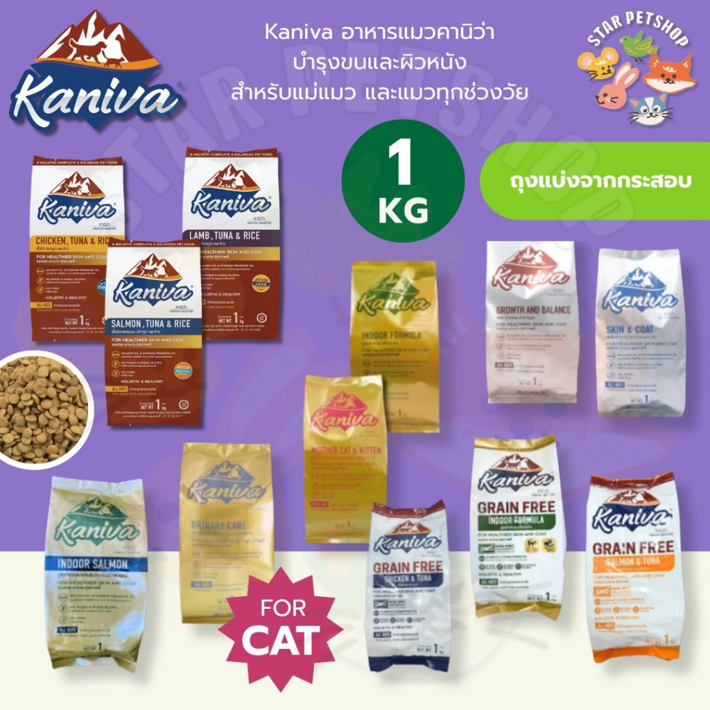 Kaniva อาหารแมวคานิว่า สำหรับแมวทุกช่วงวัย โซเดียมต่ำ ไม่เค็ม ขนาด 1 กิโลถุงแบ่งจากโรงงาน
