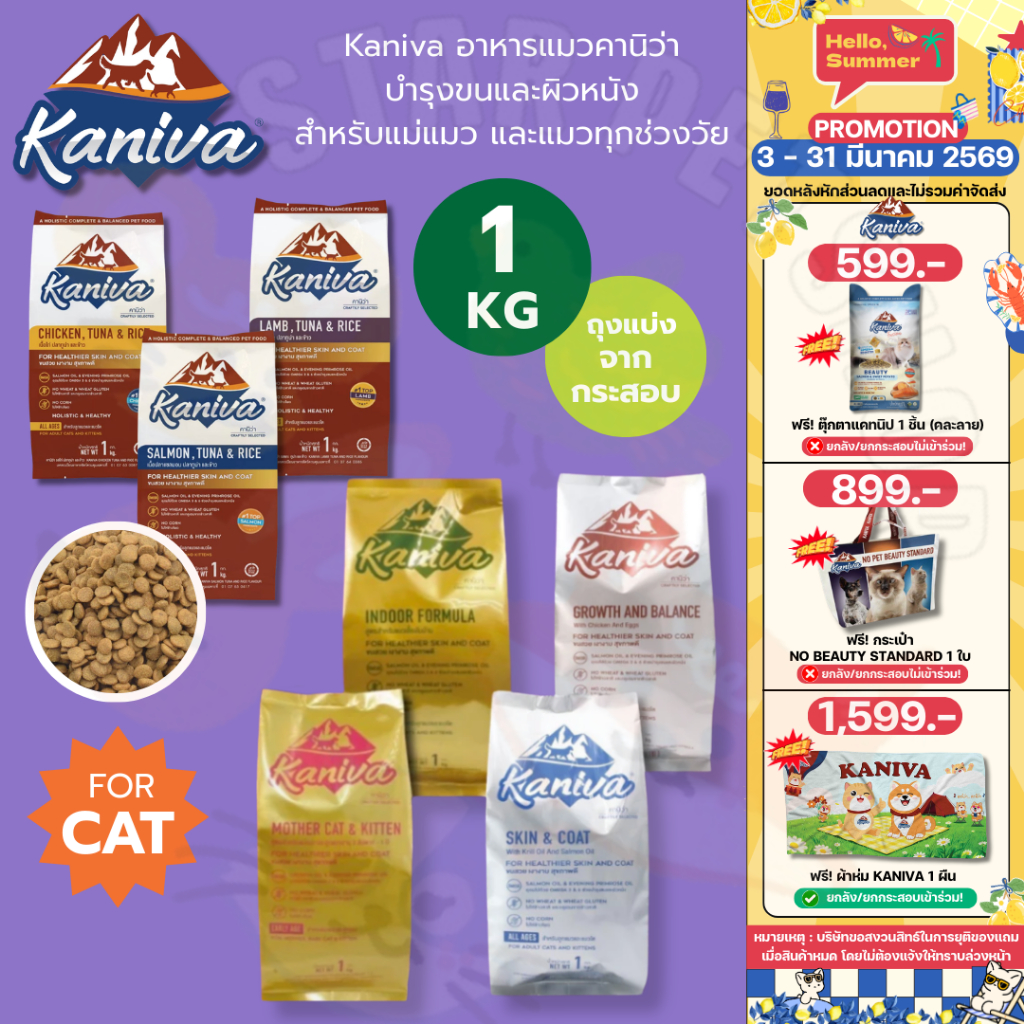 Kaniva อาหารแมวคานิว่า สำหรับแ มวทุกช่วงวัย โซเดียมต่ำ ไม่เค็ม ขนาด 1 กิโลถุงแบ่งจากโรงงาน
