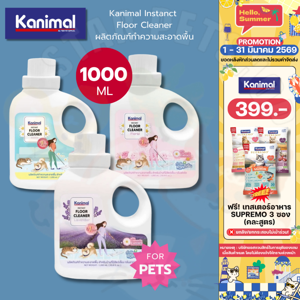 Kanimal Instanct Floor Cleaner ผลิตภัณฑ์ทำความสะอาดพื้น สำหรับสัตว์เลี้ยง ดับกลิ่นใน 1 นาที ขนาด 1L.