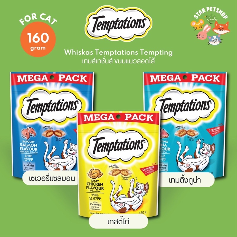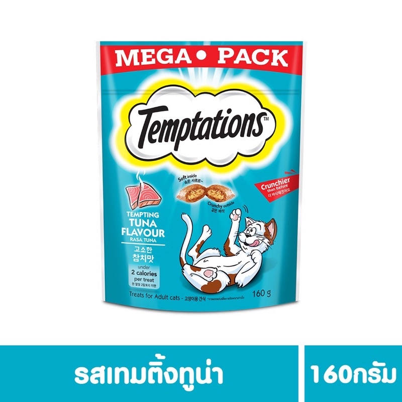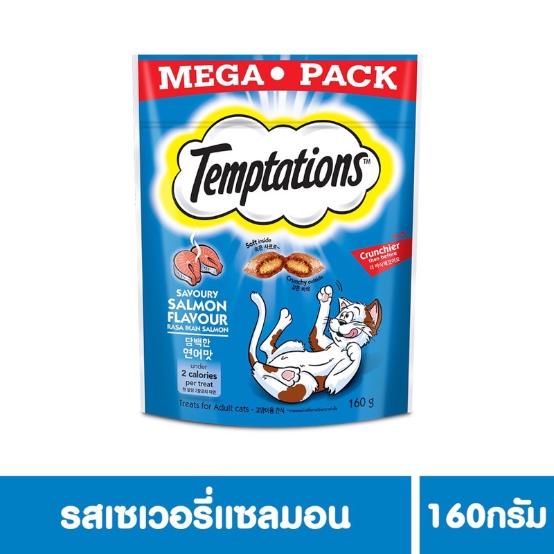 Temptations เทมเทชั่น ขนมแมวกรอบนอกนุ่มใน พ็อกเก็ตสอดไส้ ขนาด 160 กรัม