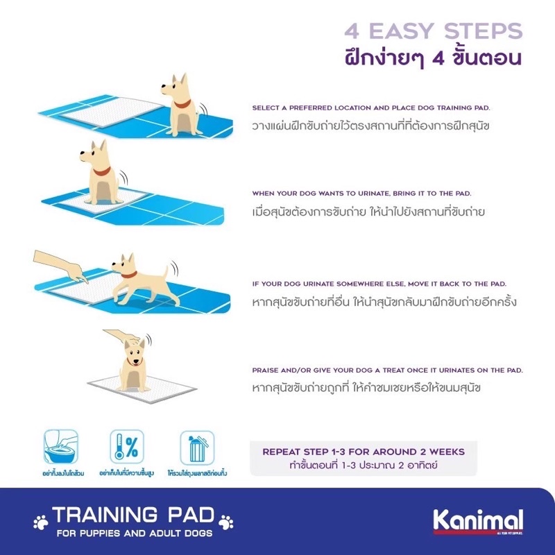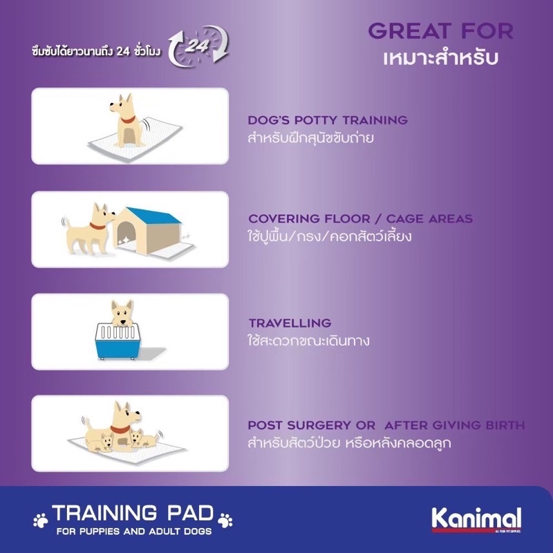 Kanimal คานิมอล แผ่นรองฉี่สุนัข แผ่นรองซับสัตว์เลี้ยง มีเจลซึมซับ เทปกาวรุ่นคาร์บอน ซึมซับ
