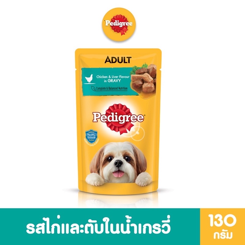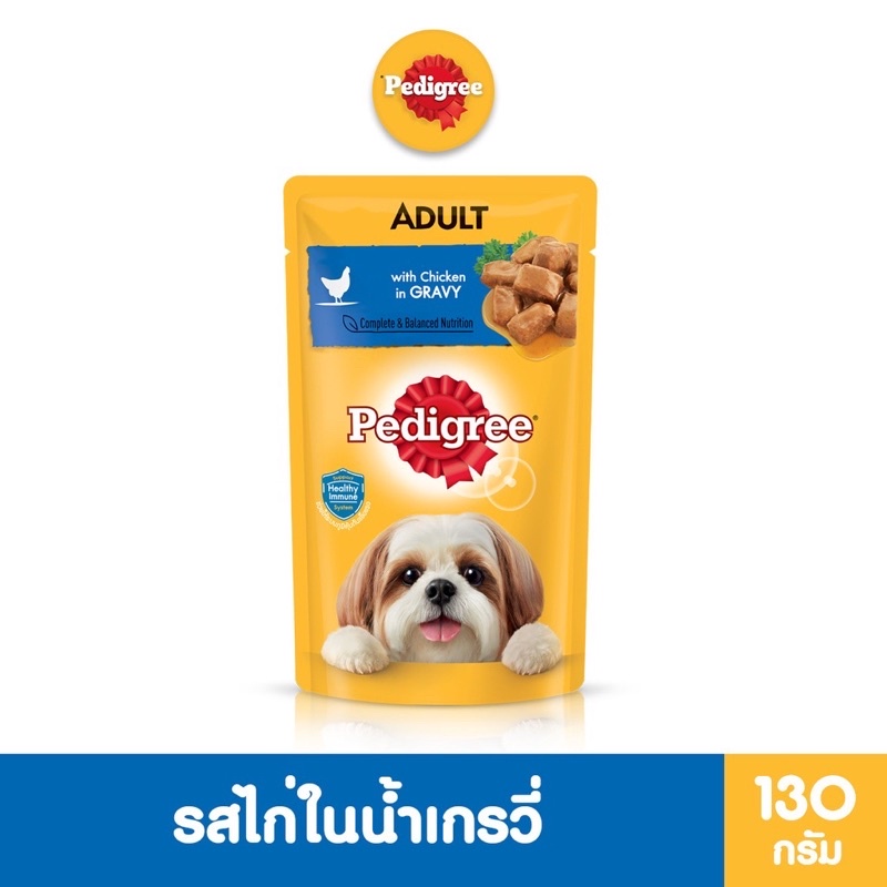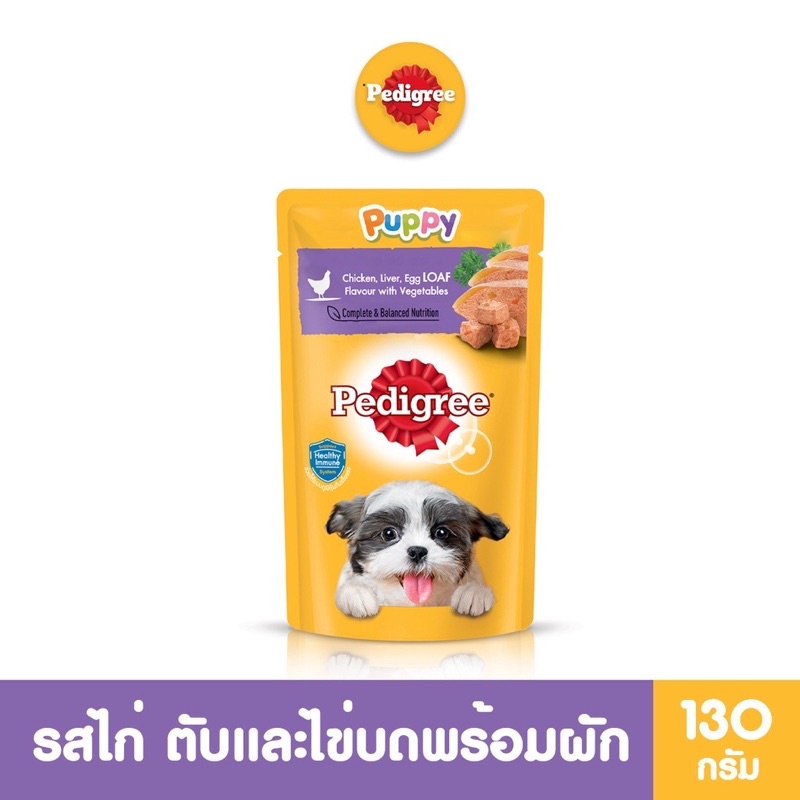 ยกกล่อง12ซอง🔥 Pedigree เพดดิกรี® อาหารเปียกลูกสุนัขและสุนัขโต ขนาด 130 กรัม*12ซอง