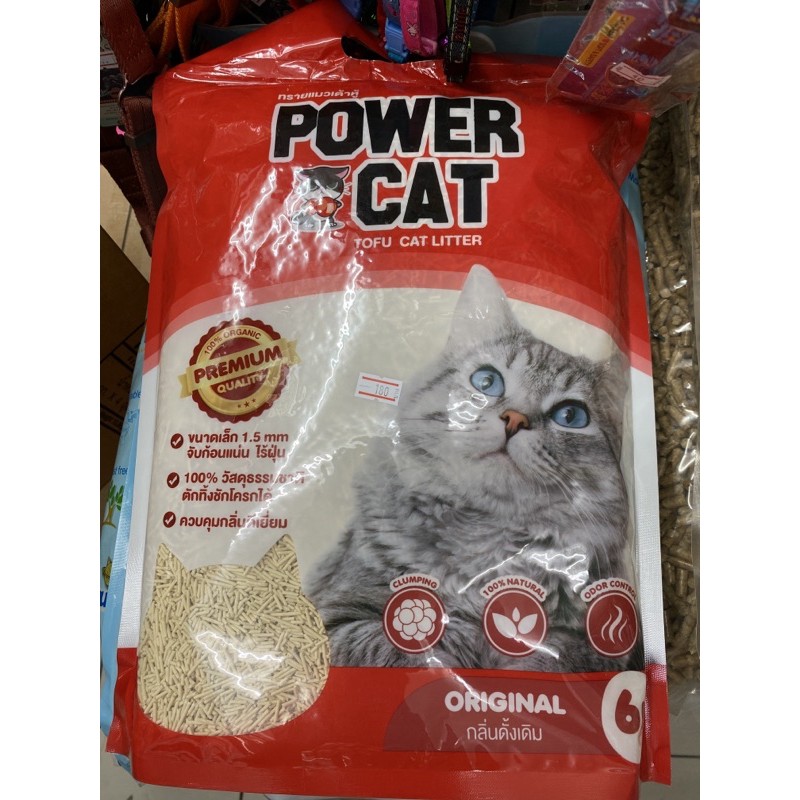 Powercat ทราย เต้าหู้ ORGANIC ทรายแมวเต้าหู้พาวเวอร์แคท จับเป็นก้อน ไร้ฝุ่น ควบคุมกลิ่น 6,10 ลิตร