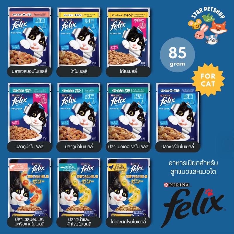 Felix เฟลิกซ์ อาหารเปียกแมว เกรดพรีเมี่ยม สูตรบำรุงสุขภาพ ขนาด 85g*12 ซอง