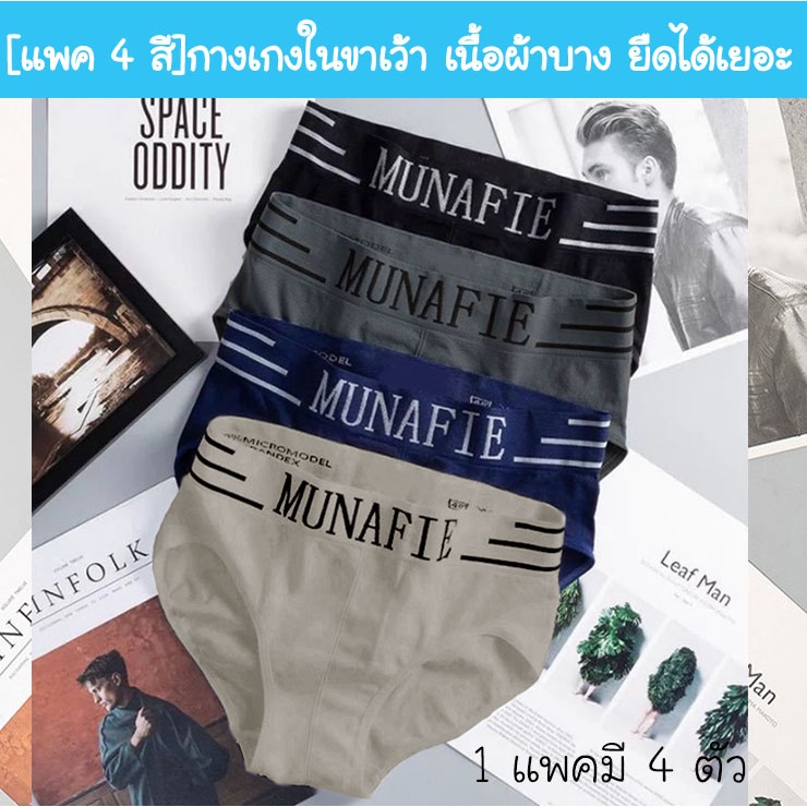 [แพค 4 สี] MNF-90 กางเกงในชาย ขา เว้า ผ้านิ่มบางใส่สบาย ยืดได้เยอะ สำหรับเอว 28-36 นิ้ว ไม่มีถุงแยกชิ้น