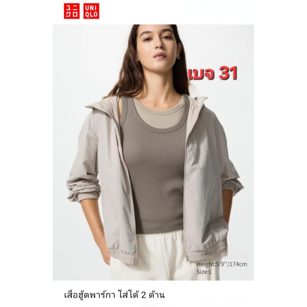 โค้ดลด30%SHOPEE🧧เพิ่มแบบใหม่2026♨️ใส่ได้ 2 ด้าน เสื้อฮู้ด JERSEY UNIQLOแท้ กันฝนปรอย