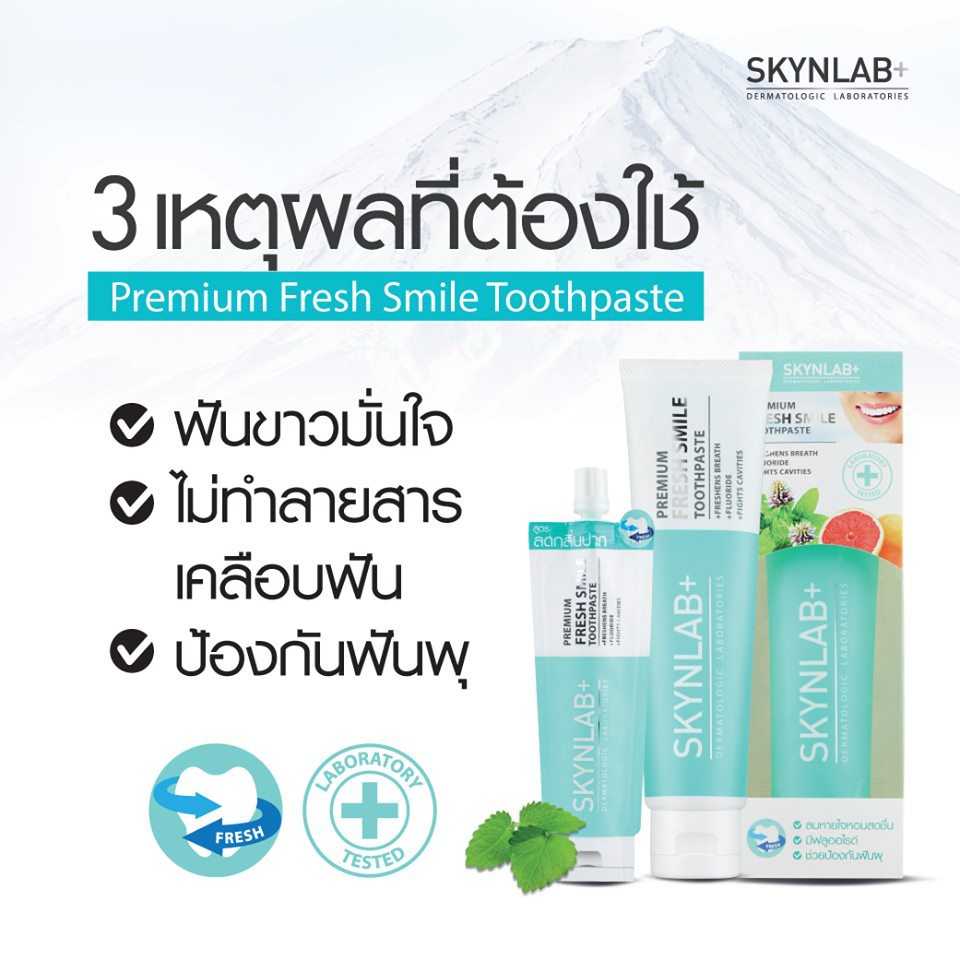 ถูก/แท้/มีไลฟ์ (ซอง 12g.) ยาสีฟัน Skynlab Premium Fresh Smile Toothpaste ลดกลิ่นปาก สกินแล็บ ฟันขาว ปากหอม