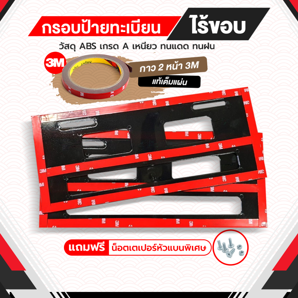 🔥ราคาโรงงาน🔥 กรอบทะเบียน รถยนต์ไร้ขอบ กรอบป้ายทะเบียนรถยนต์แบบเปลือย 1 ชุดได้ 2 ชิ้น ABSแท้ 3Mแท้เต็มแผ่น เหนียวไม่หลุด