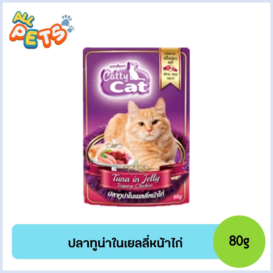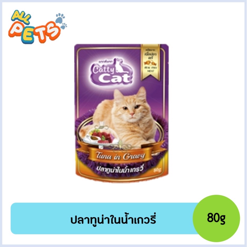 Catty Cat แคทตี้แคท อาหารแมวเปียก (สูตรทูน่าเนื้อแดง) แบบซอง 80g
