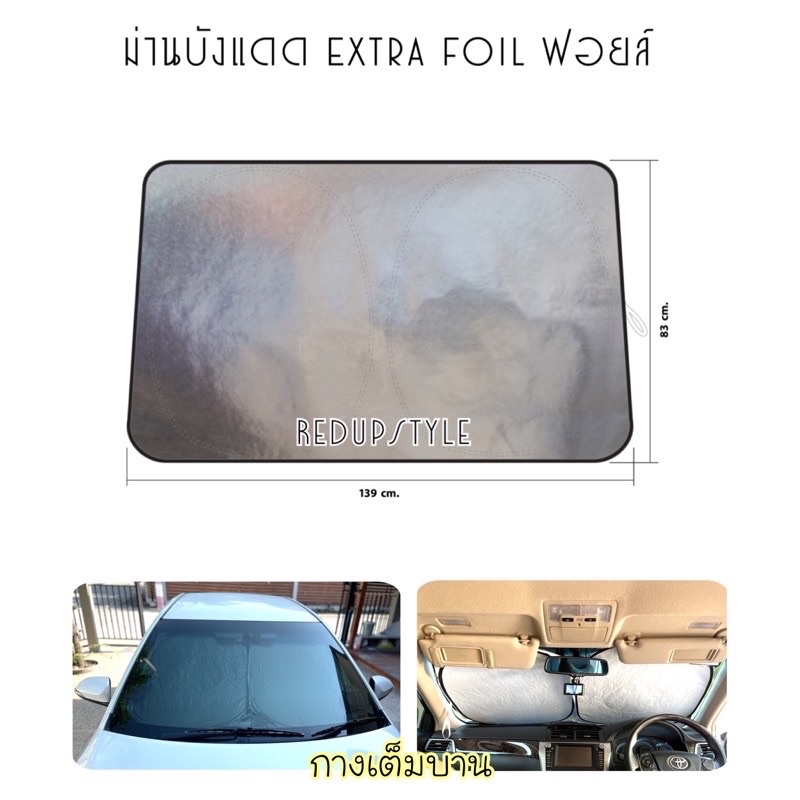 ม่านบังแดดหน้า Extra Foil & Silver หลังดำ มี 2 แบบ ให้เลือก กันแดดได้ดีเยี่ยม