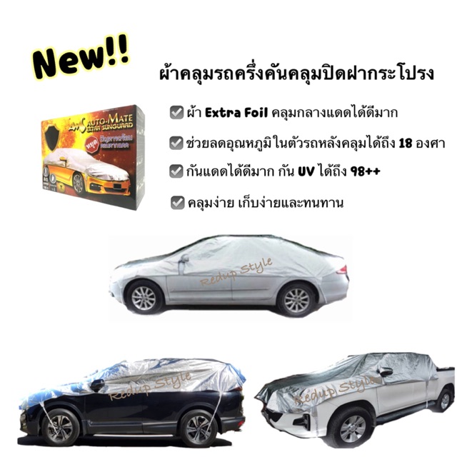 ผ้าคลุมรถครึ่งคัน(คลุมปิดฝากระโปรง) Extra Foil Sunguard🌞คลุมกลางแดดเยี่ยมสุด
