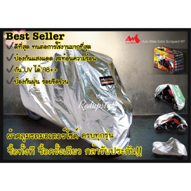 ผ้าคลุมรถมอเตอร์ไซค์ Extra Sunguard เน้นกันแดด ลดอุณหภูมิความร้อน มีหลายไซส์💥มีใบรับประกันในกล่อง💥