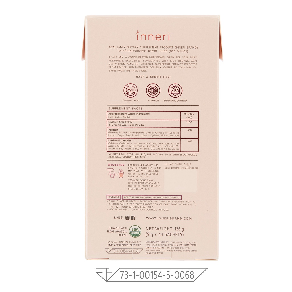 อินเนอริ อาซาอิ บี-มิกซ์ (14 ซอง) / ผงชงดื่มสูตร 5 in 1 (ขับถ่าย + ผิว + สดชื่น + ดวงตา + สุขภาพ)