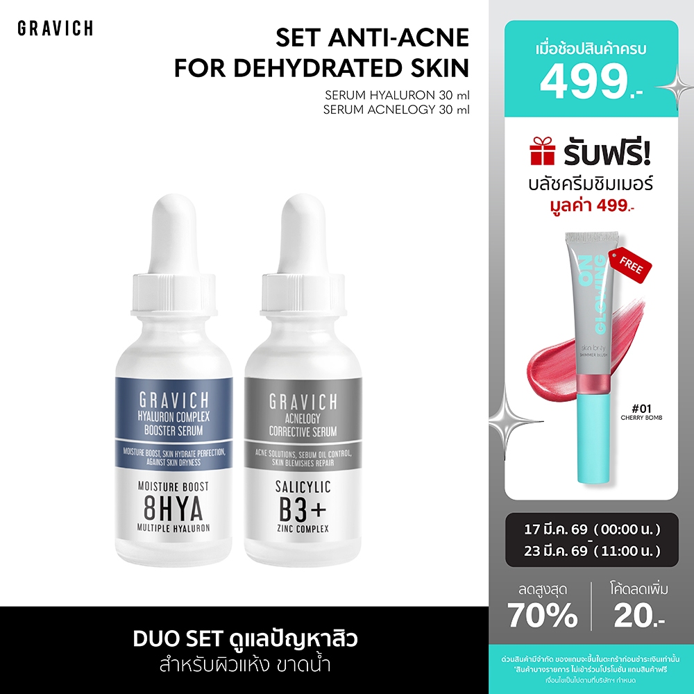 Gravich Set Anti-Acne for Dehydrated Skin (Acnelogy Serum+Hyaluron Serum) เซตเซรั่มกราวิช สูตรดูแลปัญหาสิว