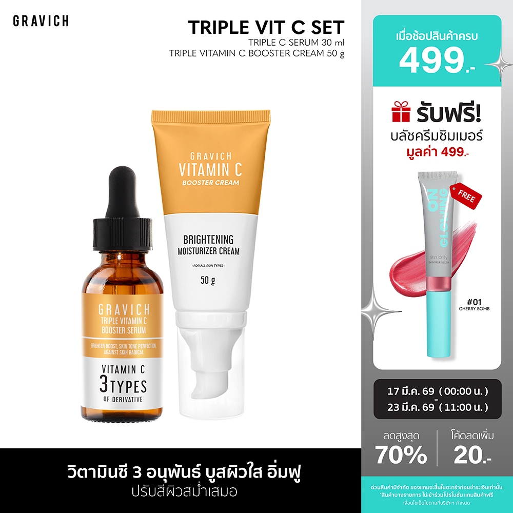 Gravich Triple Vitamin C Booster Serum + Cream Set วิตามินซี เข้มข้น 3 อนุพันธ์ บูสผิ วใส