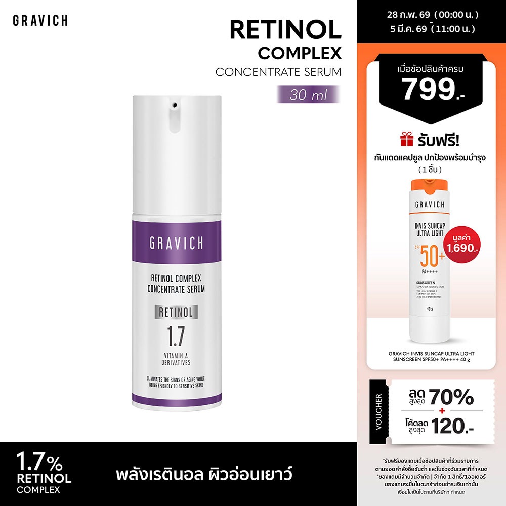 [ซื้อคู่ ถูกกว่า] Gravich Retinol Complex Concentrate Serum 30 ml เซรั่มเรตินอล 1.7%