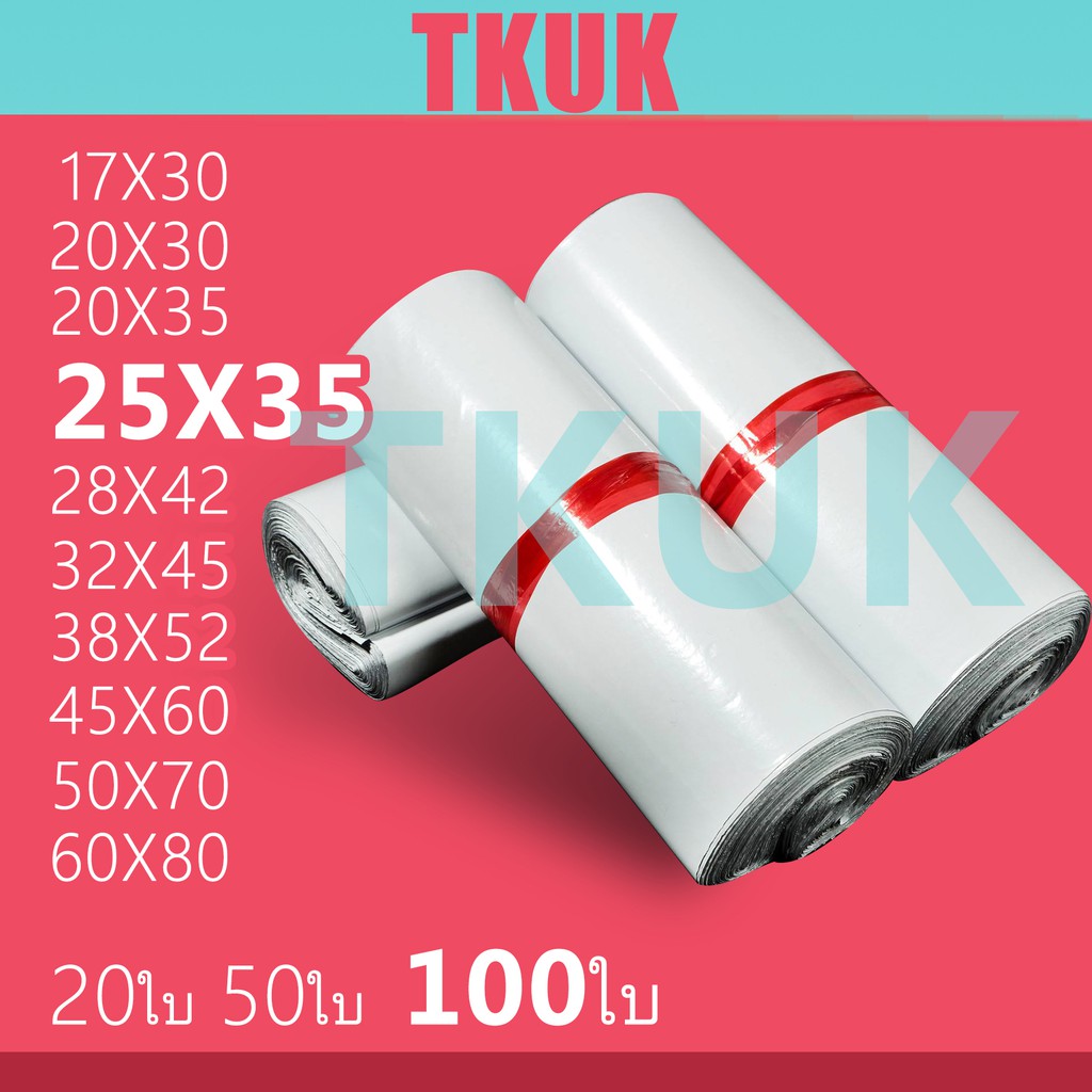 TKUK ซองพลาสติกไปรษณีย์คุณภาพ 25*35 ซ.ม. แพ็คละ 100 ใบ
