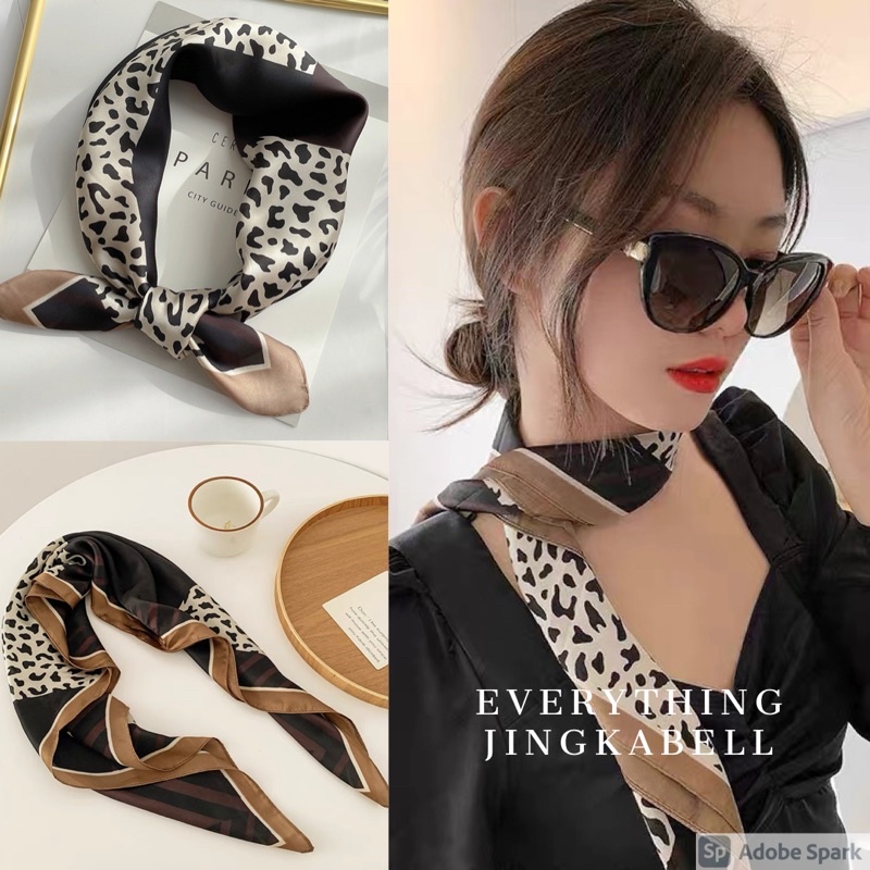 🔥พร้อมส่ง🔥 ผ้าโพกหัวลายเสือ【70x70 ซม】ผ้าพันคอลายเสือ ผ้ามัดผมเกาหลี