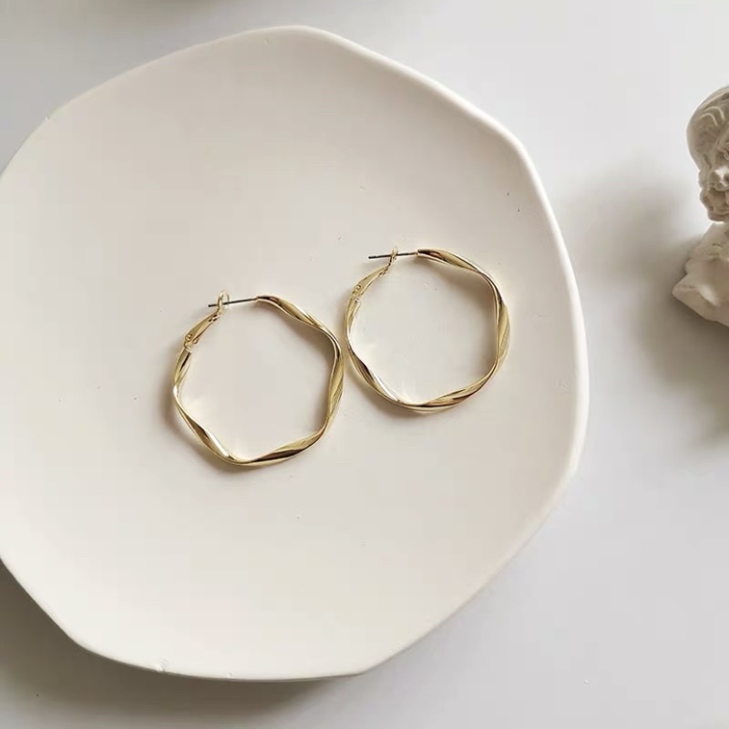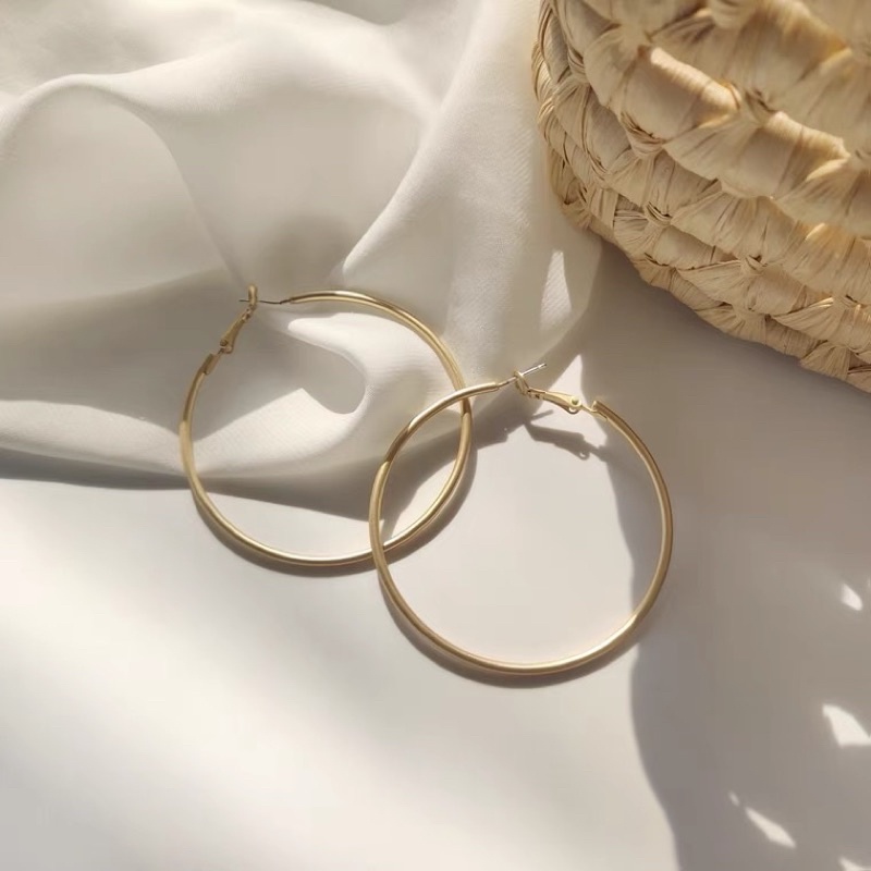 🔥พร้อมส่ง🔥 ต่างหูสายฝอ ต่างหูห่วงใหญ่ ต่างหูห่วงทอง ตุ้มหูห่วง【ไม่ใช่ก้านเงิน】
