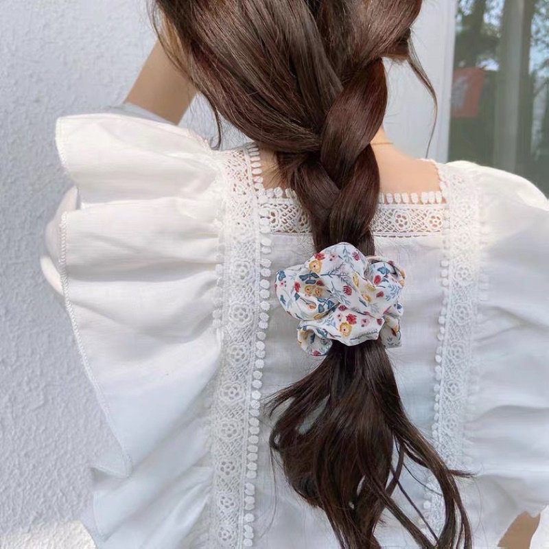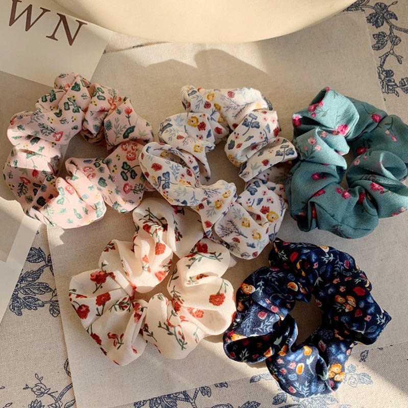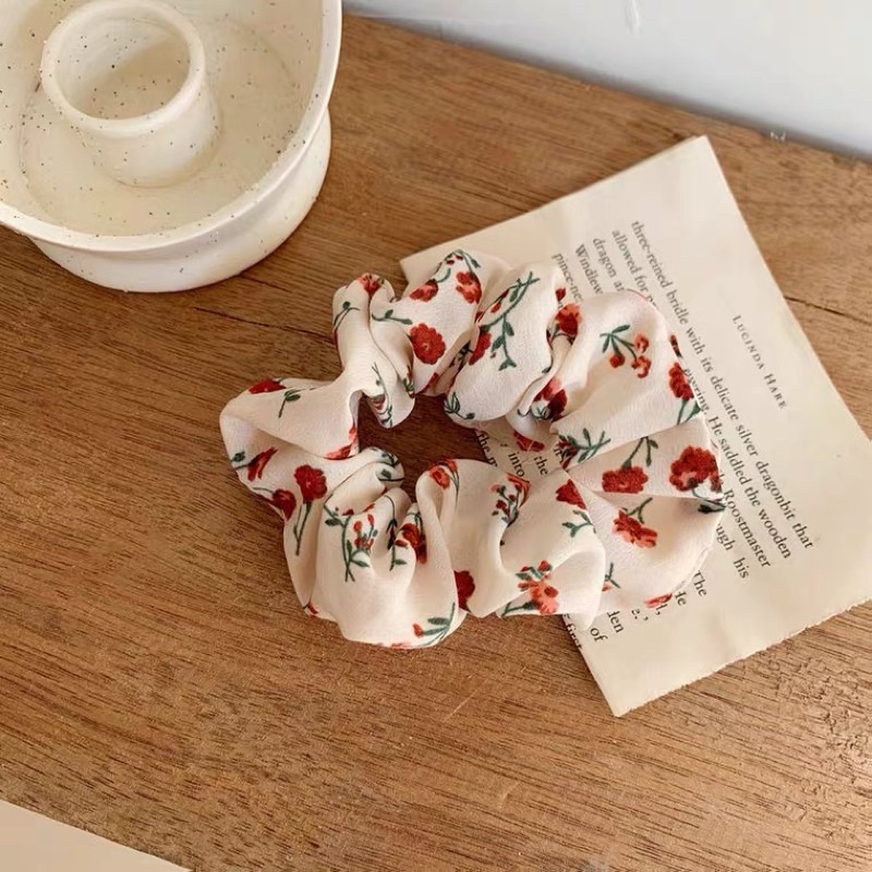 🔥พร้อมส่ง🔥 ยางรัดผมผ้าชีฟอง ยางมัดผมลายดอกไม้