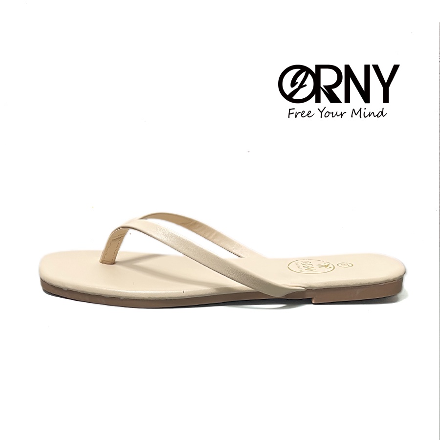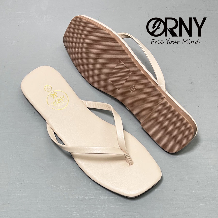 ORNY(ออร์นี่) ® พื้นยางแท้ รองเท้าแตะแบบหนีบหนังเทียม สวยทุกสี OY73 (คละสี)