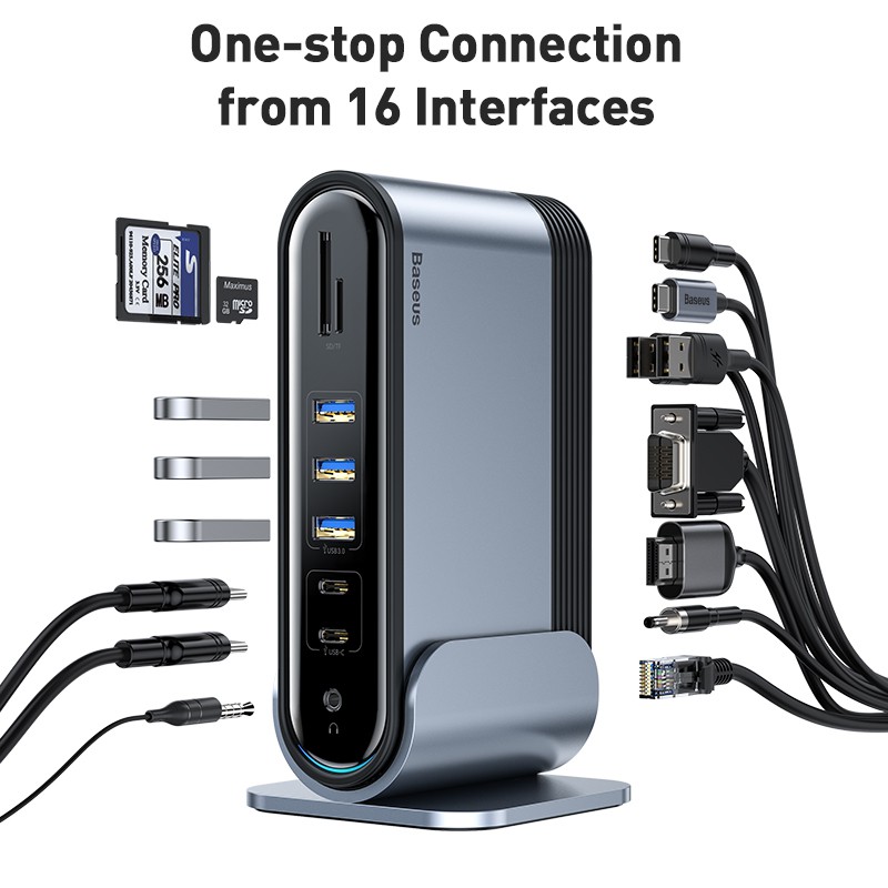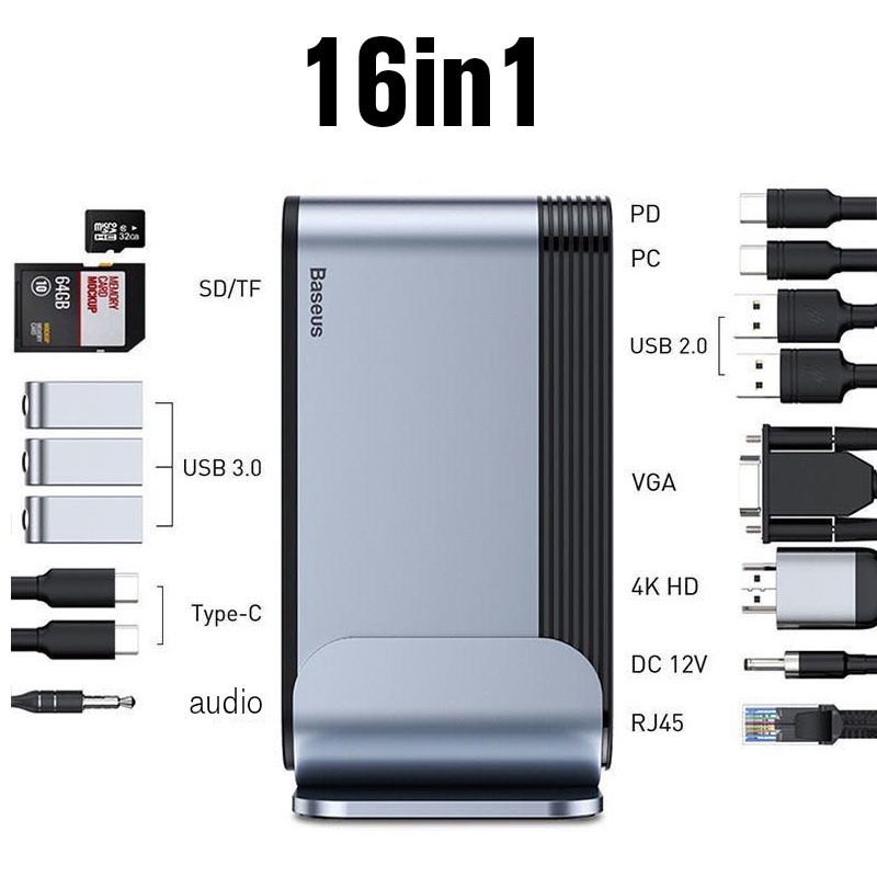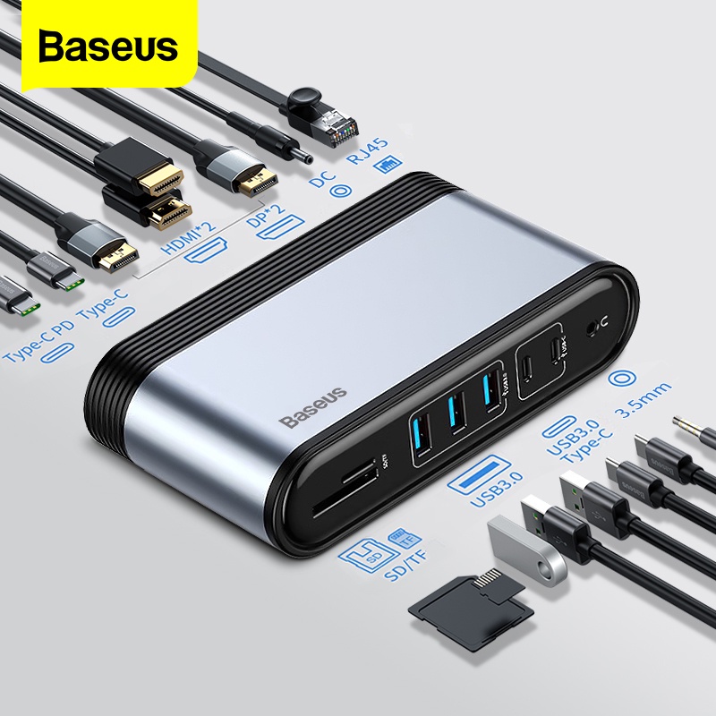 อะแดปเตอร์แปลงไฟBaseus Usb C Hub Type C To Multi Hdmi Usb 3 . 0 พร้อมอะแดปเตอร์พาวเวอร์ Docking Station สําหรับ Rj 45 Otg Usb Ports Usb Hub
