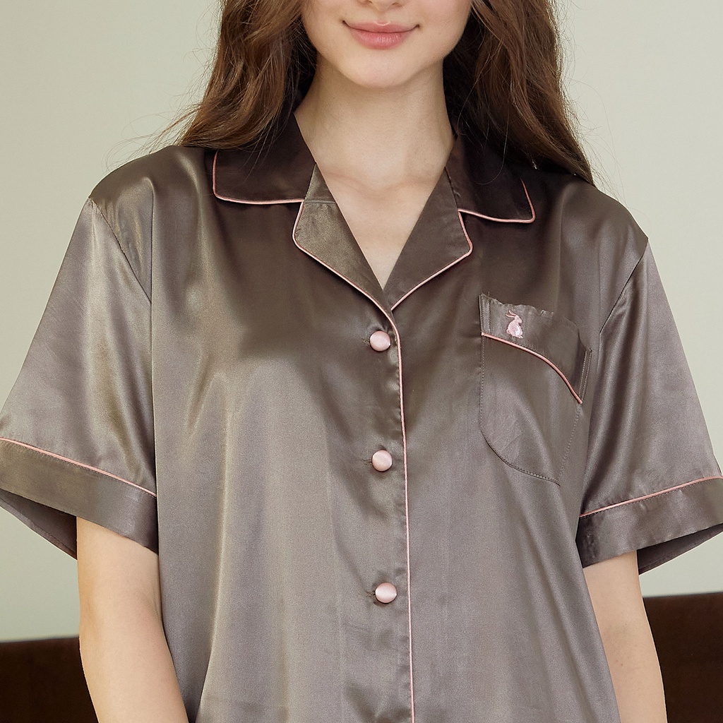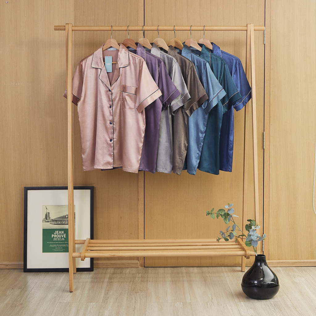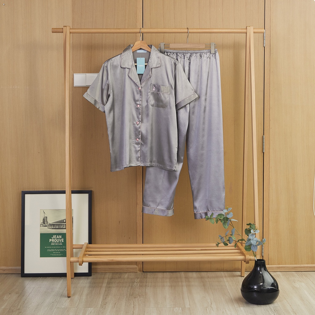 ชุดนอน Vana แขนสั้นขายาว สีพื้น ผ้าซาติน