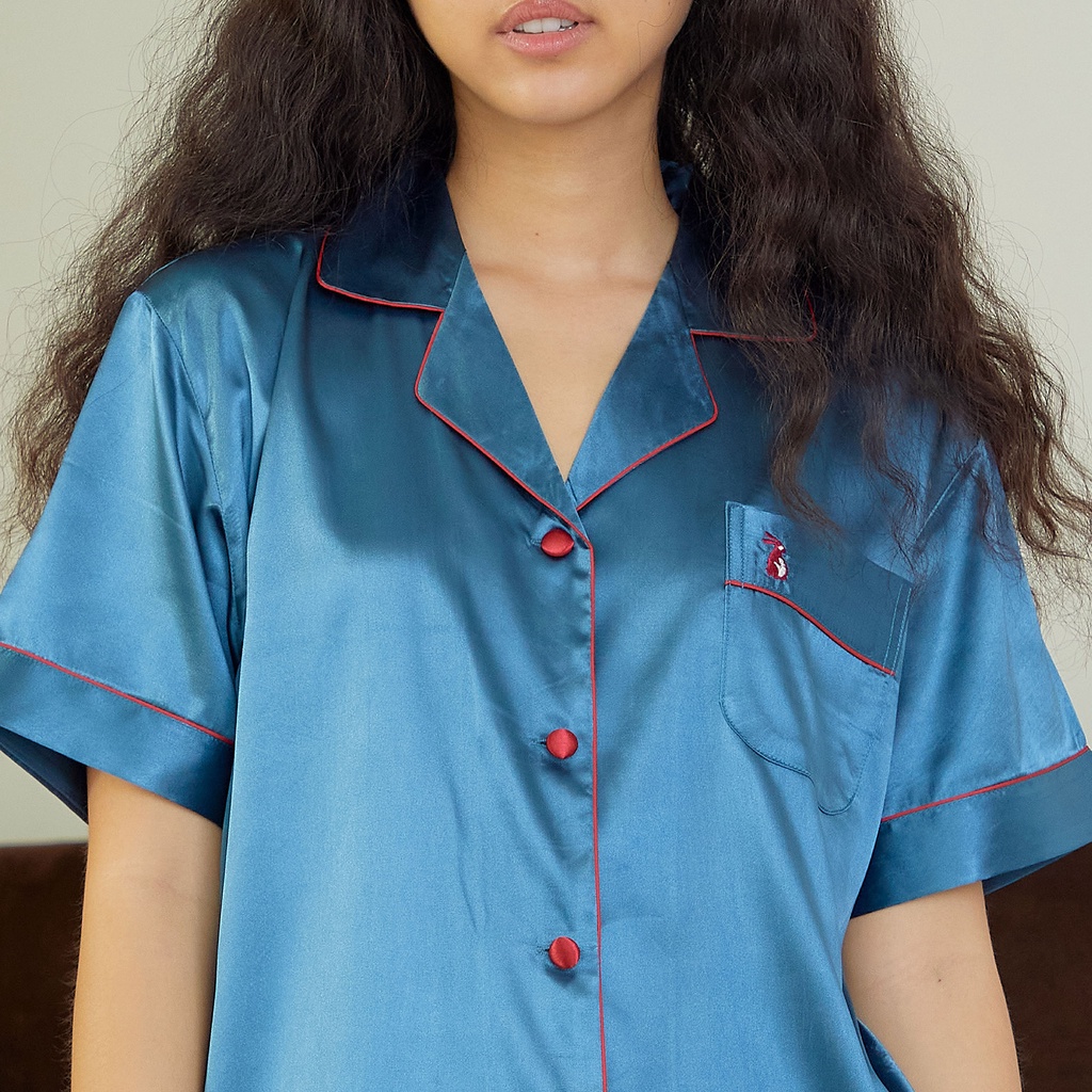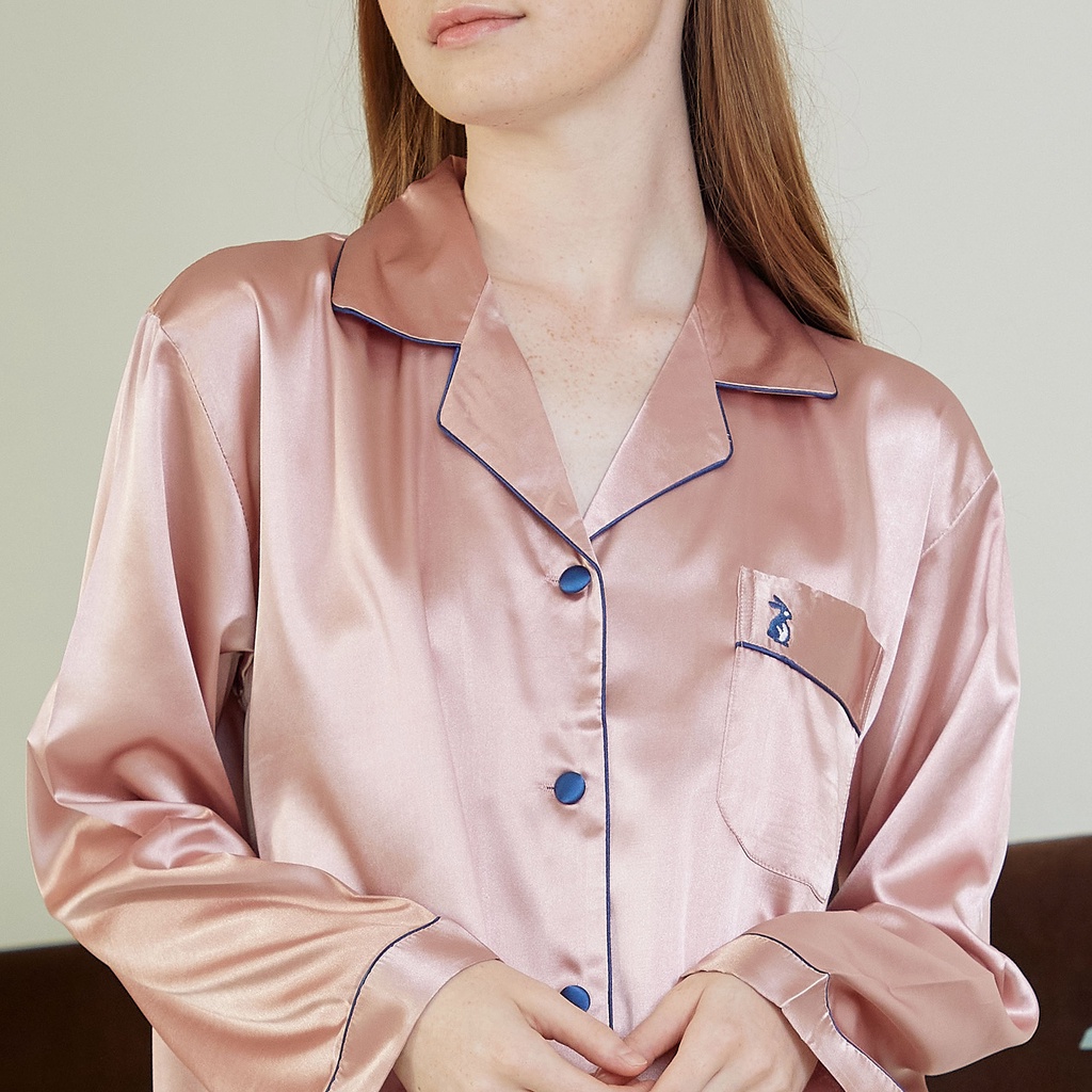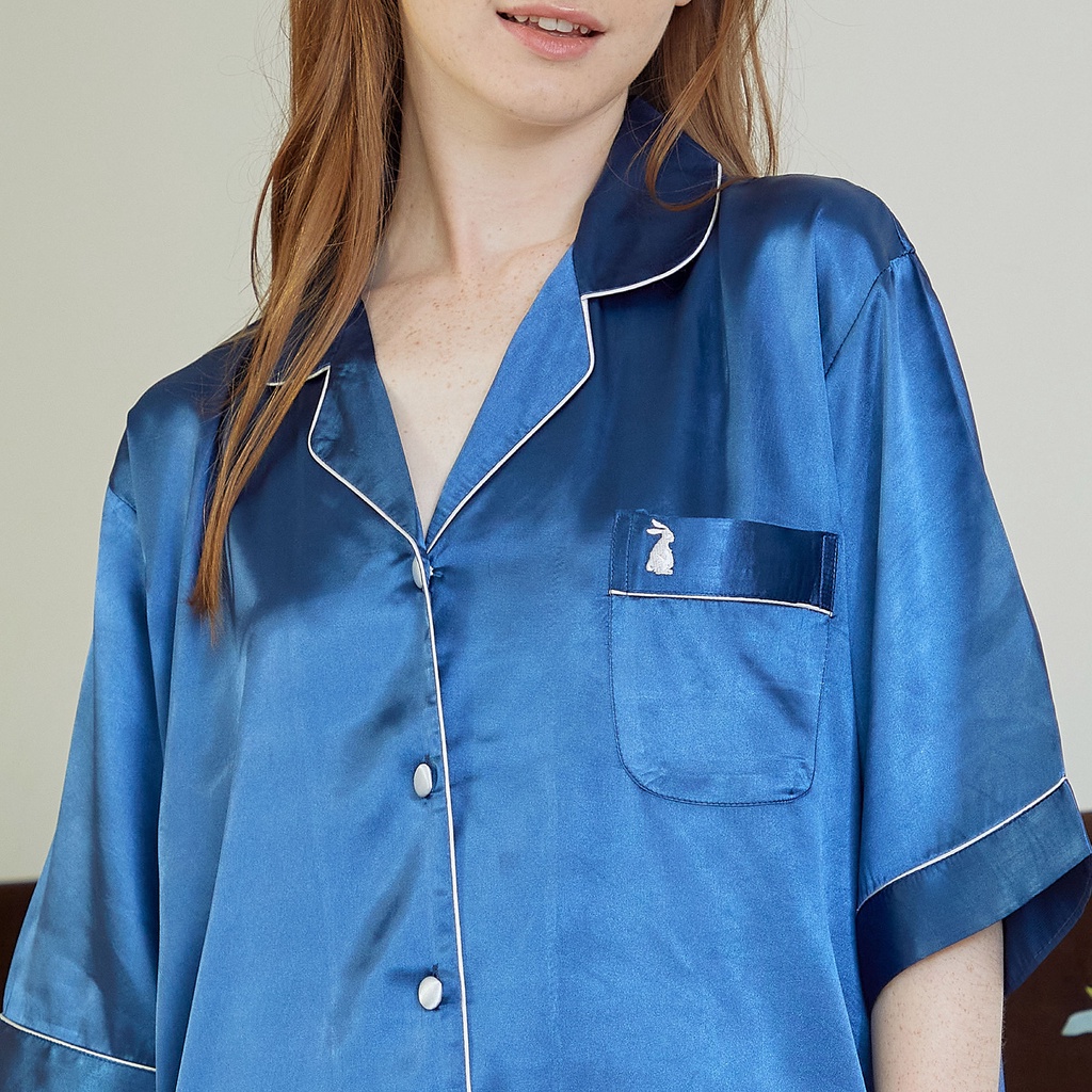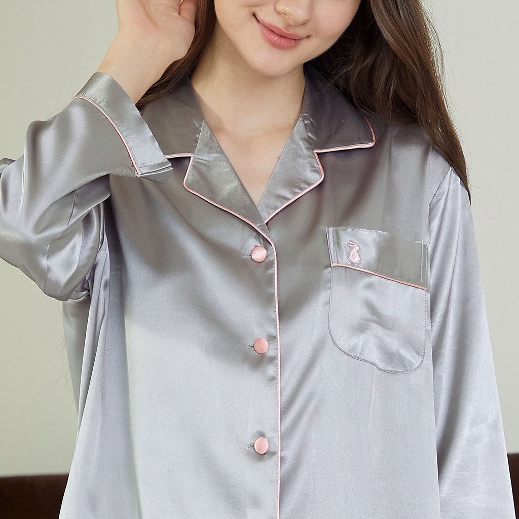 ชุดนอน Vana แขนสั้นขายาว สีพื้น ผ้าซาติน