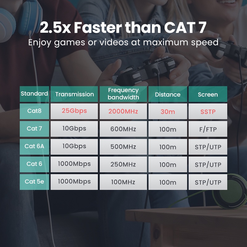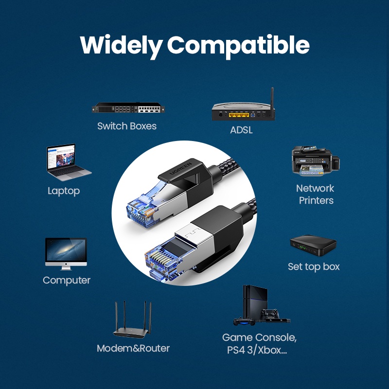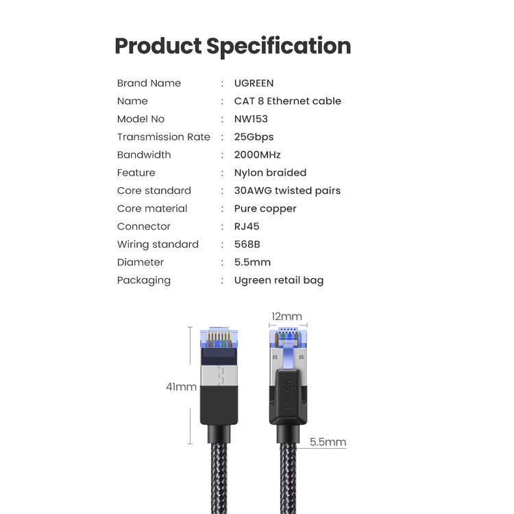 Ugreen 5m สายแลน เครือข่ายอีเธอร์เน็ต ไนลอนถัก Cat8 40Gbps 2000Mhz สําหรับแล็ปท็อป Ps 4 Router Rj45