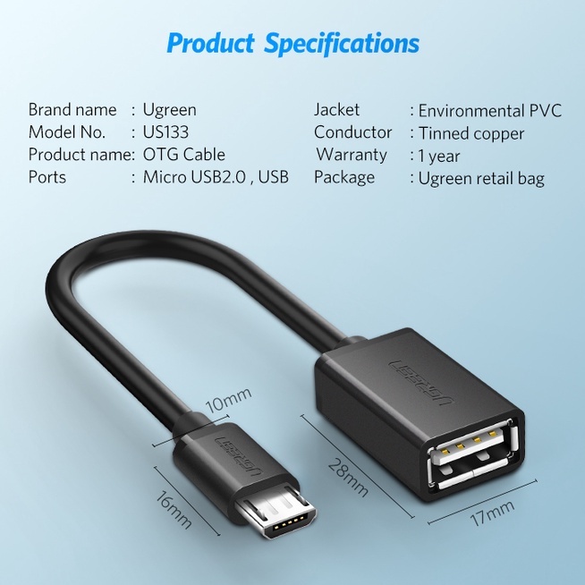 [จัดส่งภายใน 3 วัน] UGREEN สายเคเบิลอะแดปเตอร์ Micro USB 2.0 OTG ทรงกลม