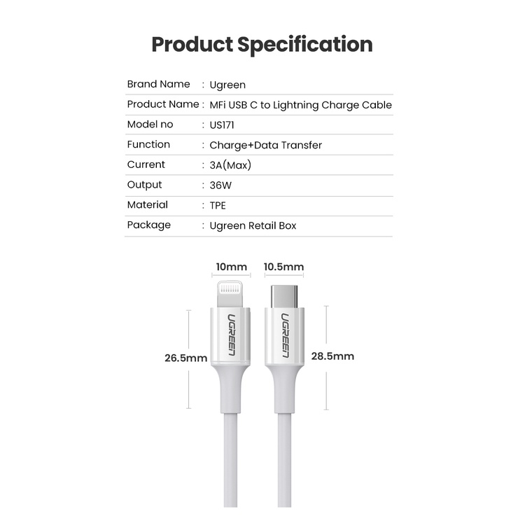 Ugreen สายชาร์จ Usb Type C เป็น Lightning 2 เมตร สําหรับ ไอโฟน 12 13 Mini Pro Max 8 Pd 18W 20W Macbook Pro
