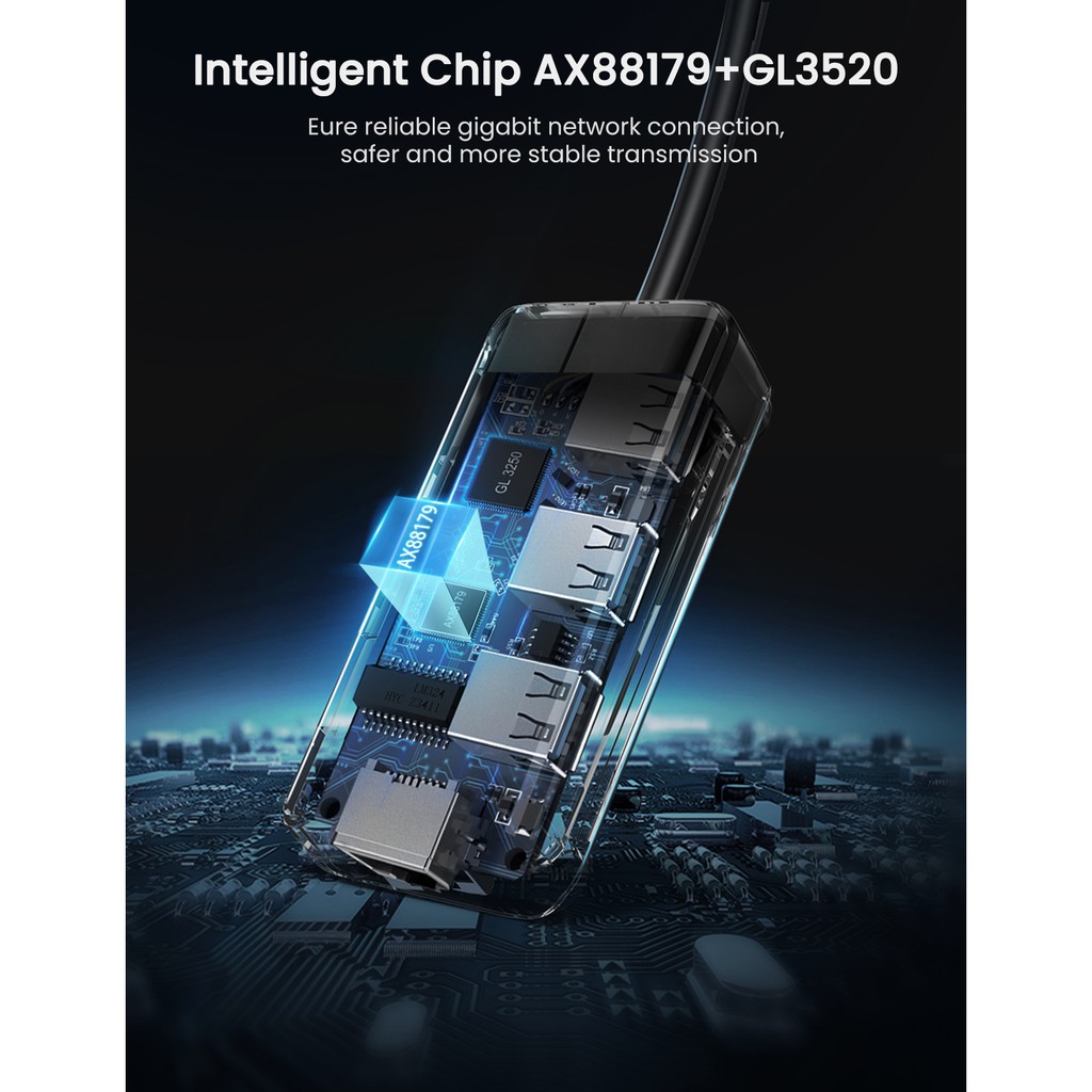 Ugreen อะแดปเตอร์การ์ดเครือข่าย USB 3.0 2.0 HUB to RJ45 Lan