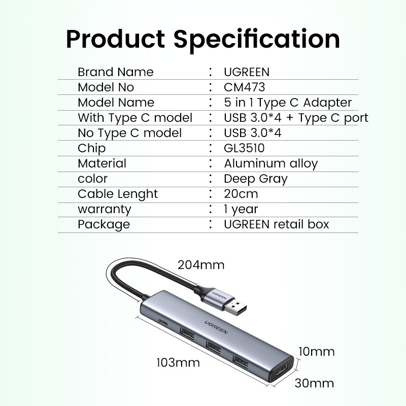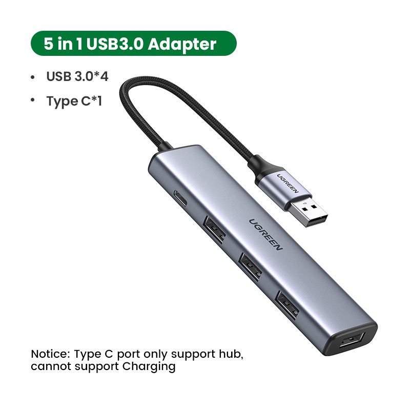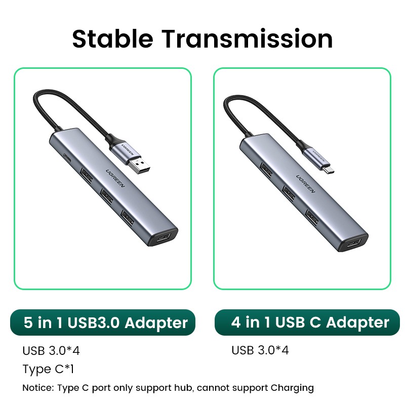 [มาใหม่] UGREEN ฮับแยก Usb C เป็น USB 3.0*4 สีเขียว