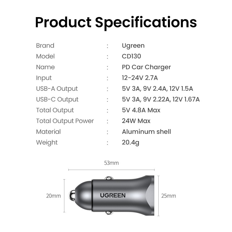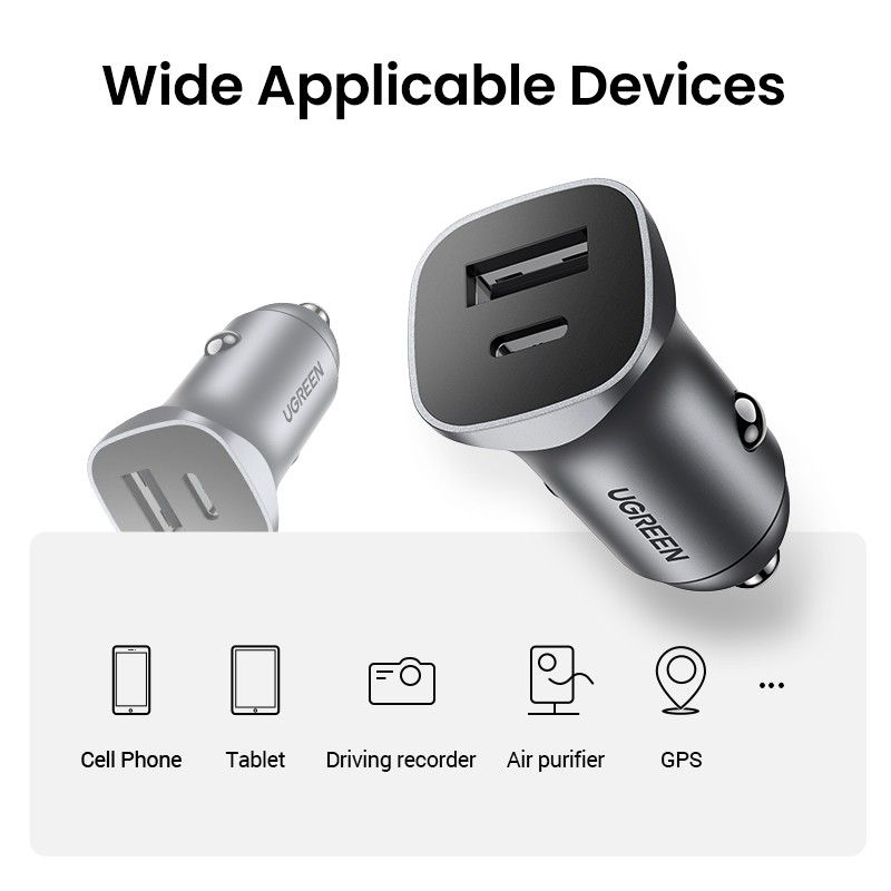 UGREEN 【จัดส่งภายใน 3 วัน】ที่ชาร์จในรถยนต์ 20W ชาร์จได้ 2 เครื่องพร้อมกัน 4.0 3.0 QC USB สําหรับ Xiaomi QC4.0 QC3.0 20W iPhone X Xr Xs 8 iPhone 14 14 Pro Pro Max