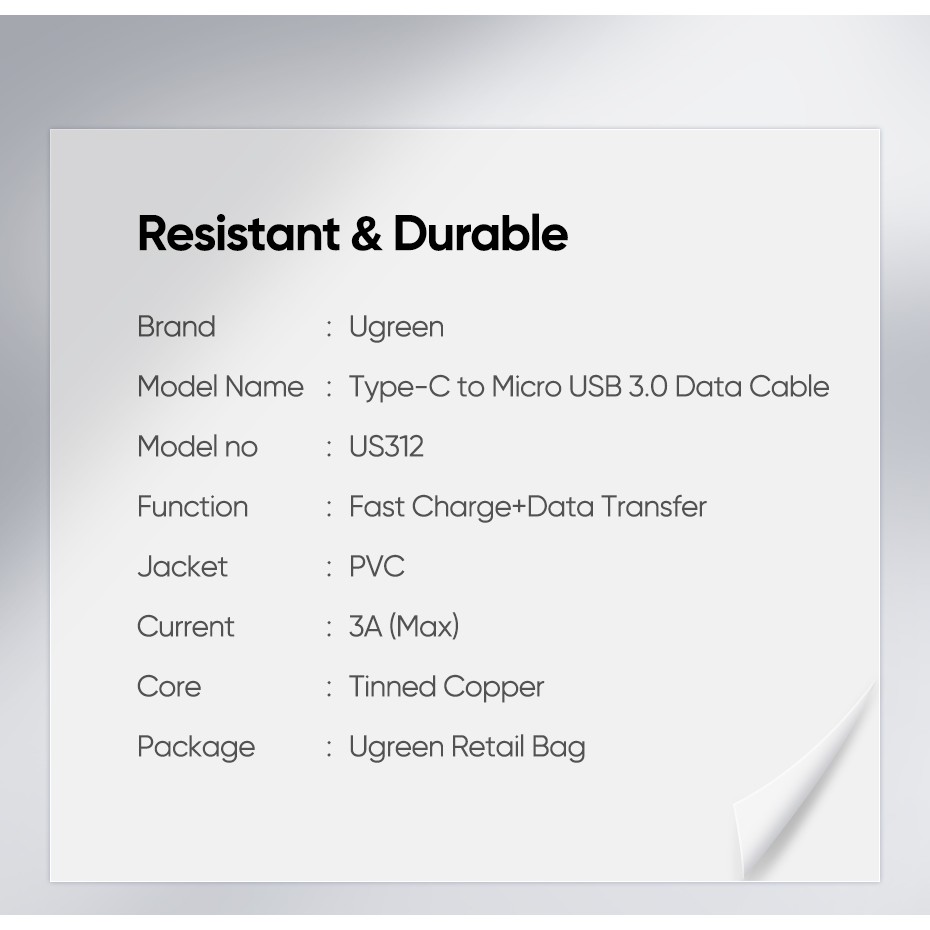 Ugreen สายชาร์จ เเละ ซิงค์ข้อมูล จาก USB Type C เป็น Micro USB 3.0