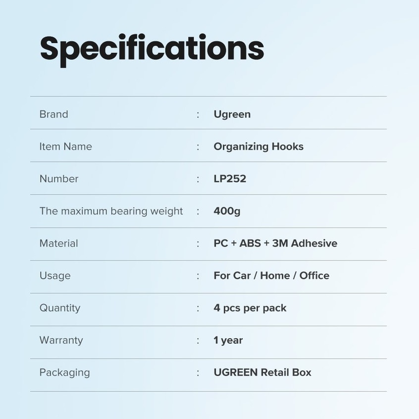 Ugreen Storage Hook ตะขอจัดระเบียบ สายเคเบิล 2 ชิ้น