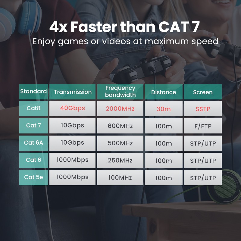 Ugreen สายเคเบิล อีเธอร์เน็ต Cat 8 40 Gbps 2000 Mhz สําหรับแล็ปท็อป Ps 4 Router Rj45