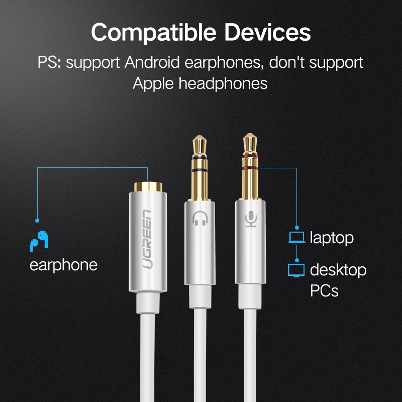 Ugreen สายสปอตเตอร์รูปตัว Y 3.5mm. ตัวเมียแปลงเป็นตัวผู้ 2 ตัว ยาว 28 ซม. สําหรับหูฟังต่อคอม