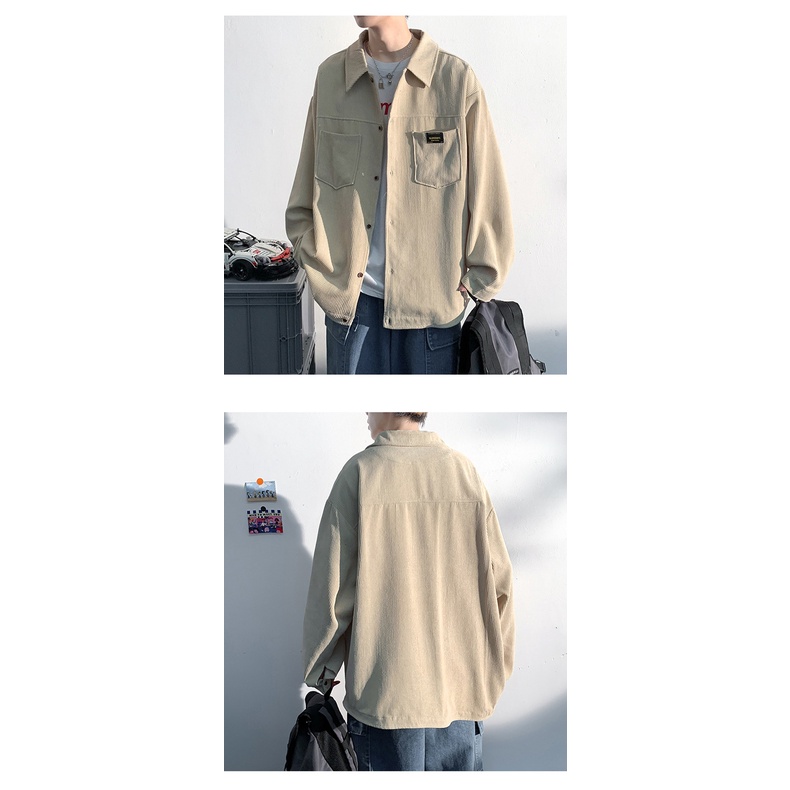ผ้าลูกฟูก เสื้อเชิ้ตแขนยาวผู้ชายฤดูใบไม้ร่วงฤดูหนาวหลวมขนาดใหญ่เสื้อด้านนอกปกอินเทรนด์ผู้ชายเสื้อผ้าด้านบนสบายๆ ไม่1