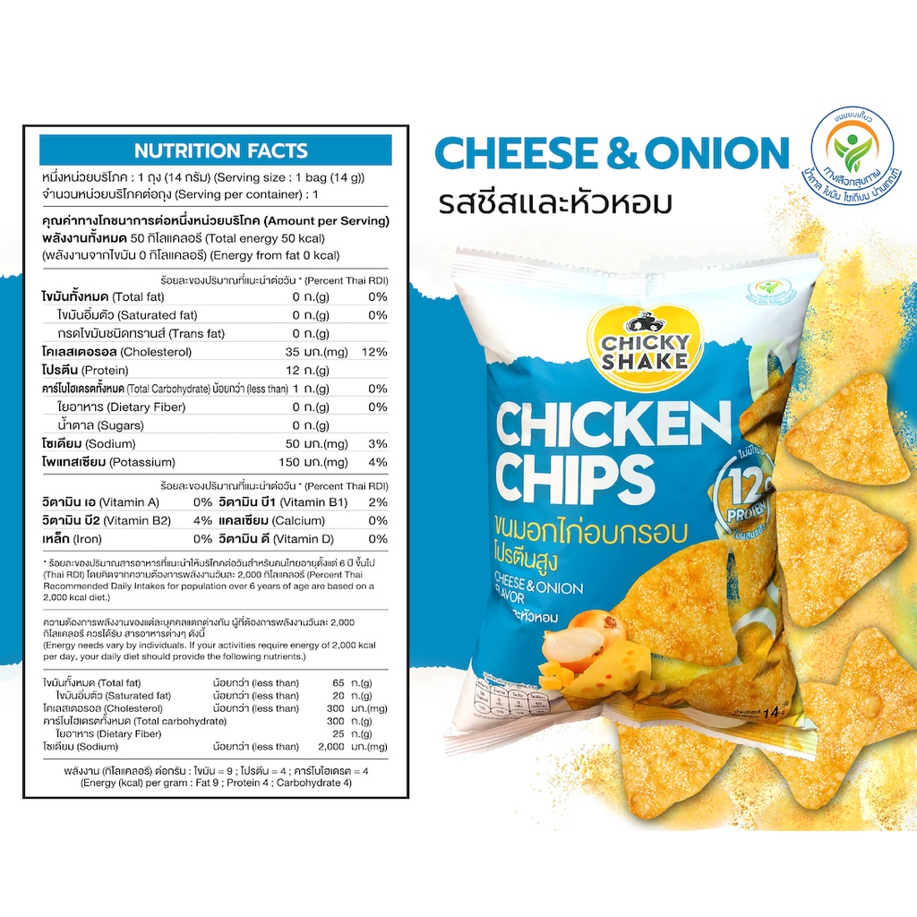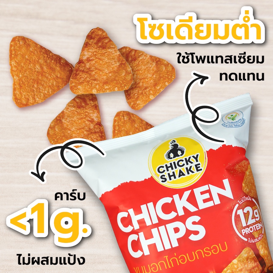 ขนมอกไก่อบกรอบ โปรตีนสูง Chicky Shake รสชีสและหัวหอม (3 ซอง) ขนมคีโต ขนมคลีน แคลลอรี่ต่ำ Keto ขนมโปรตีน