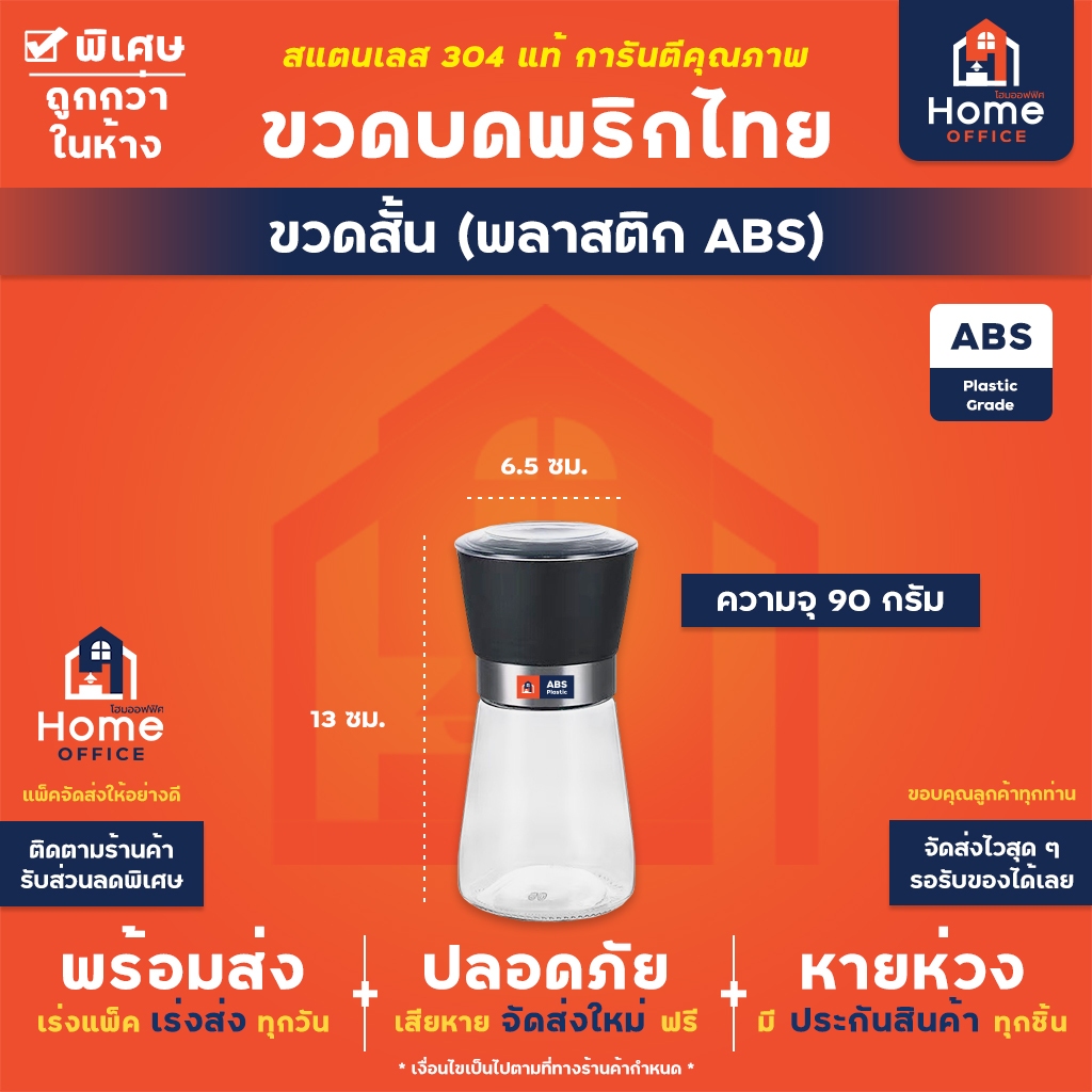 Home Office ขวด บดพริกไทย (สแตนเลส 304 แท้) เกรด A+ ขวดแก้วไร้สารตะกั่ว ขวดบดเกลือ พริกไทย งา หิมาลัยยัน ถั่ว ยา อาหารปลา