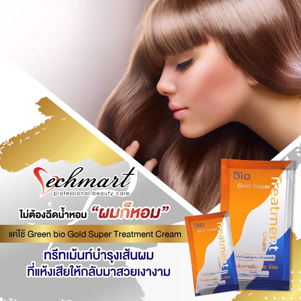 Bio ทรีมเม้นท์ แบบซองสีทอง Green bio Gold Super Treatmaent Cream 1 ซอง