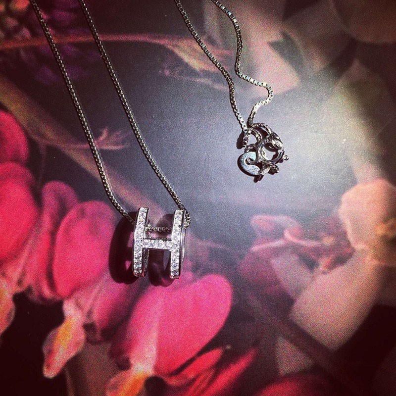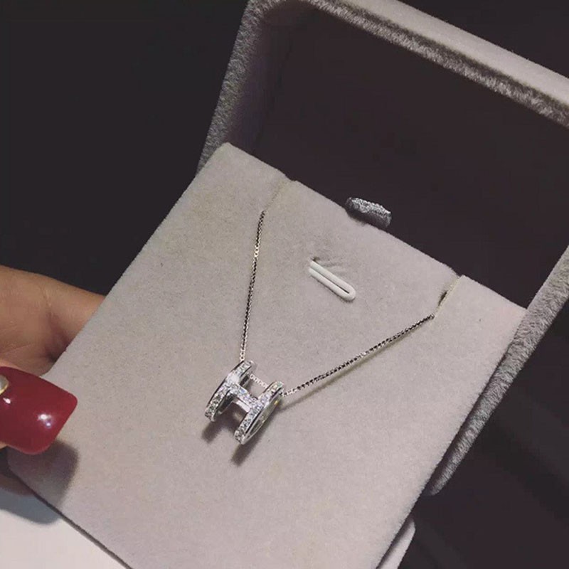 สร้อยคอสายโซ่ จี้ตัวอักษร H ประดับเพชร หรูหรา สไตล์เกาหลี สําหรับผู้หญิง