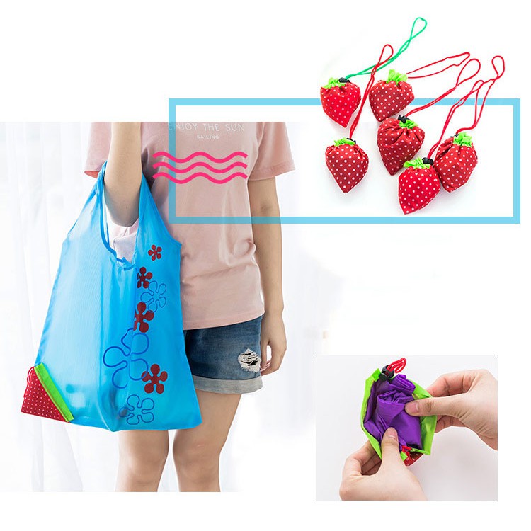 below99 กระเป๋าช้อปปิ้งอเนกประสงค์พับเก็บเป็นลูกสตรอเบอร์รี่ รุ่น 6244