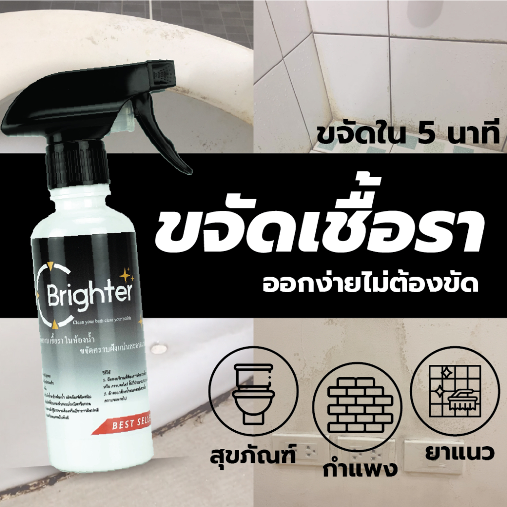 น้ำยากำจัดเชื้อรา MADE IN THAILAND 🇹🇭 ห้องน้ำ กำแพง ผนัง กระเบื้อง ยาแนว BRIGHTER