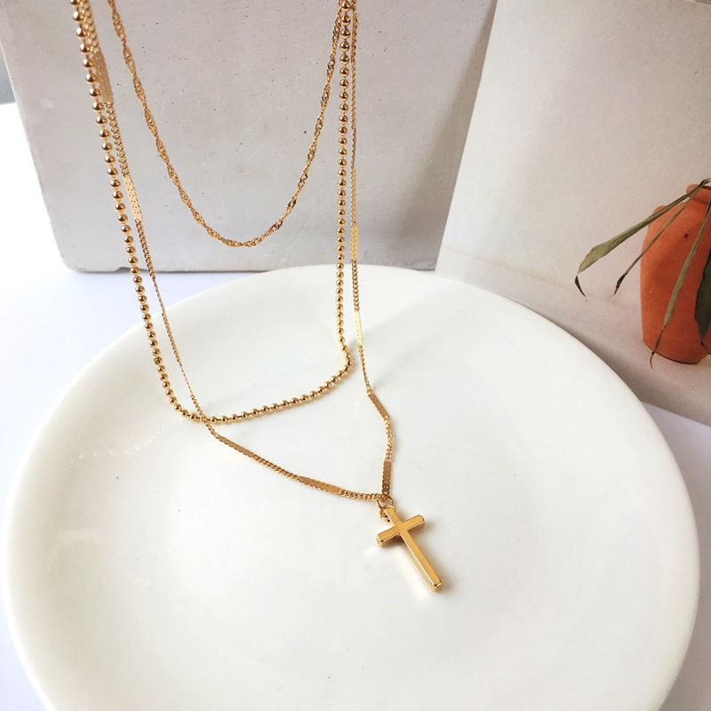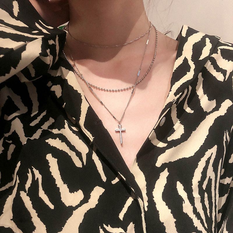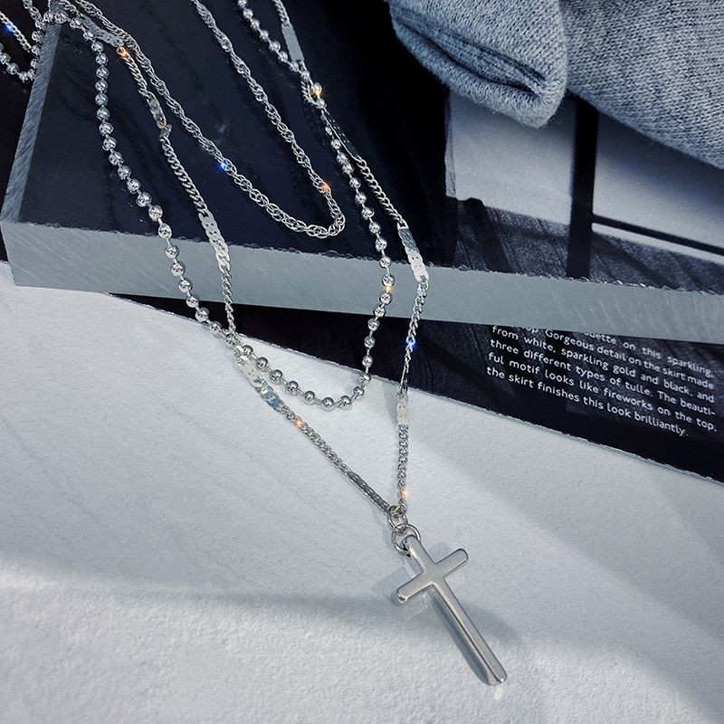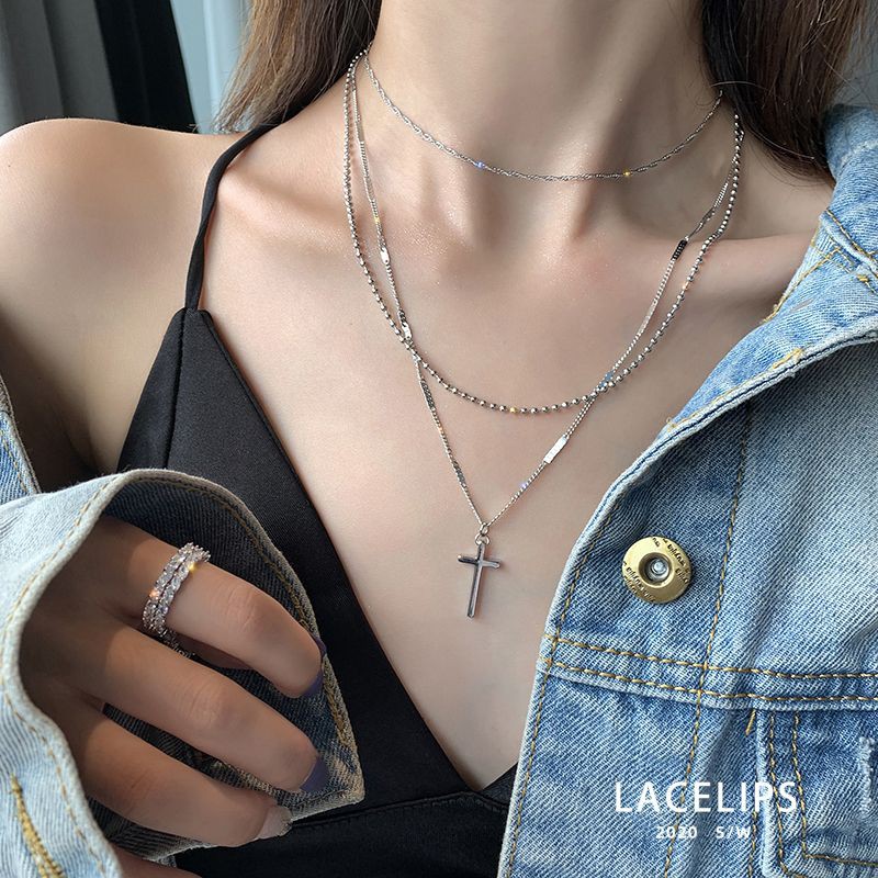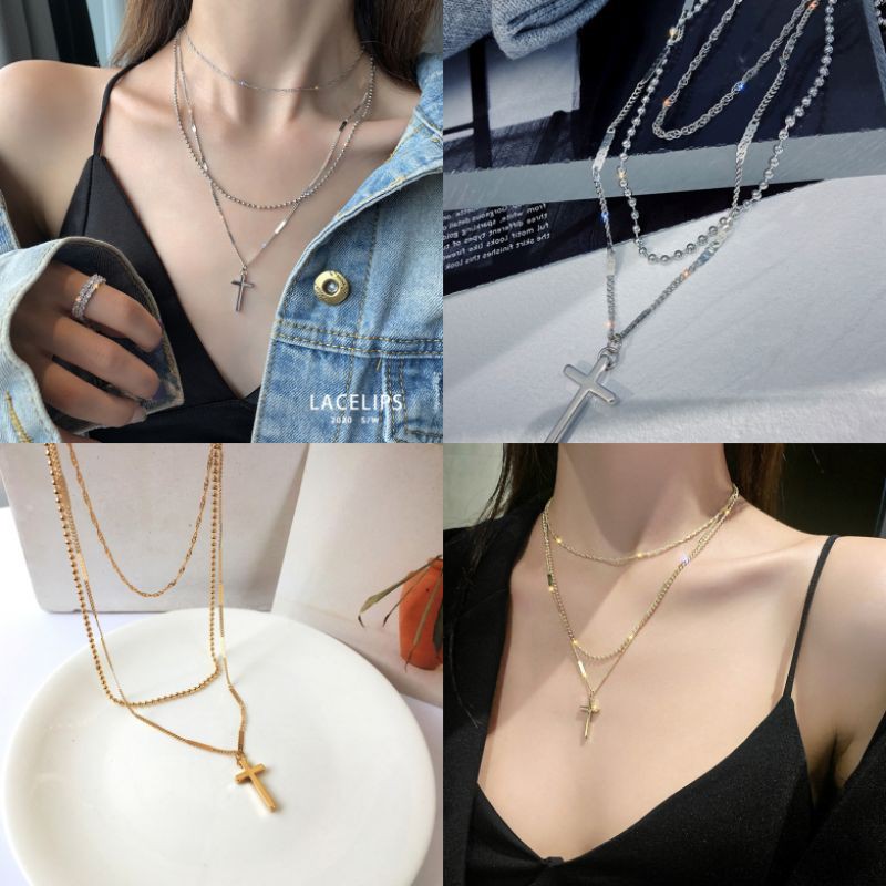 สร้อยคอแฟชั่น สไตล์เกาหลี เส้น3ชั้นกางเขน